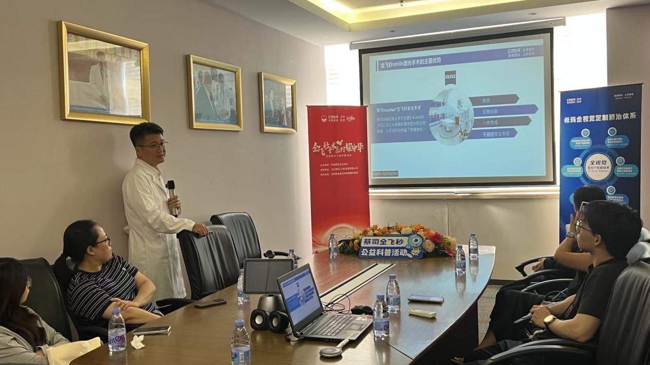 活动中,深圳新安希玛眼科医院石峰院长担任主讲嘉宾,为现场观众带来了一场干货满满的眼健康科普讲座。石院长用通俗易懂的语言,深入浅出地讲解了近视手术的发展与原理,并将焦点对准了近视矫正领域的“明星”——全飞秒精准4.0技术及其升级版全飞秒SMILE Pro。