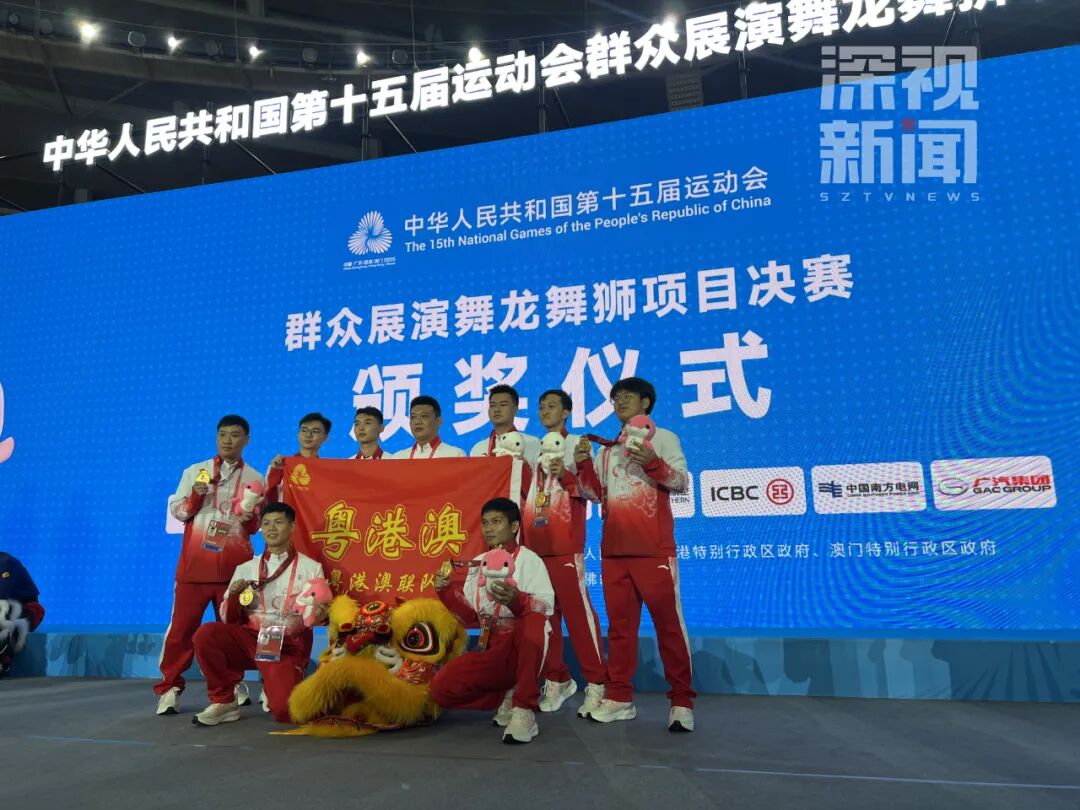 11月11日下午,在南狮巅峰对决中,一支由深圳、香港、澳门青年组成的“粤港澳联队”脱颖而出。他们以一套行云流水、气势如虹的高桩自选动作,赢得了9.28的全场最高分,成功夺冠!