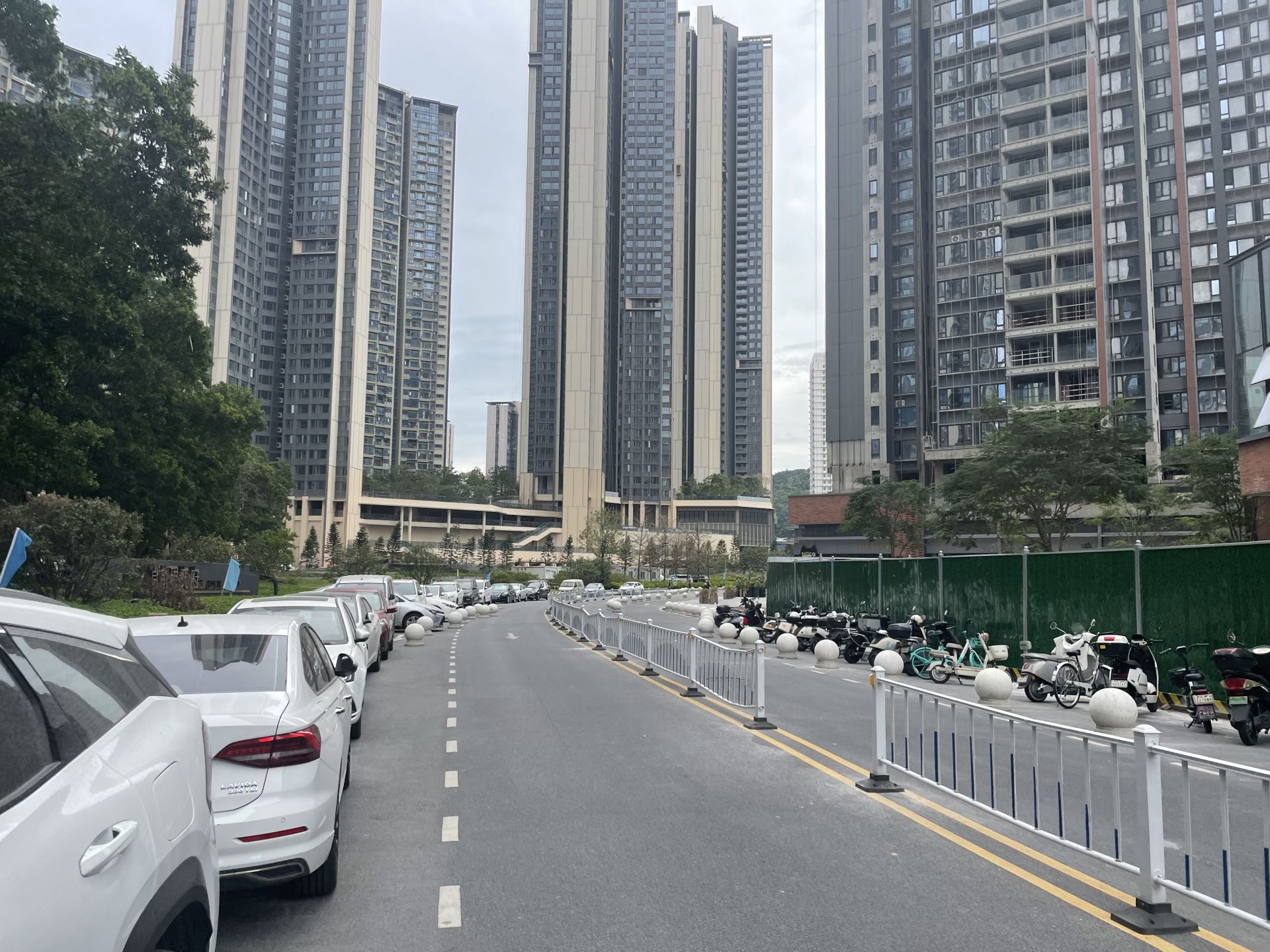 另一条仍在施工的锦华东路,路面情况也有好转。临时停车沿路边占一车道,没出现先前的占用两车道的情况。此外,施工单位在学校出口处用围挡预留了一条供家长接送学生的上下学通道。