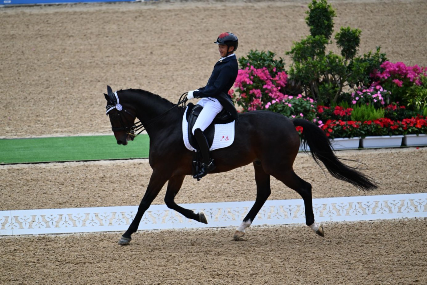 首日迎来的是盛装舞步团体决赛(个人资格赛),赛场上,优雅的钢琴乐始终萦绕耳畔,骑手和骏马一起变身“优雅的舞者”,或慢步,或斜横步,或快步,在驰骋与跃动中,演绎着力与美的极致平衡。