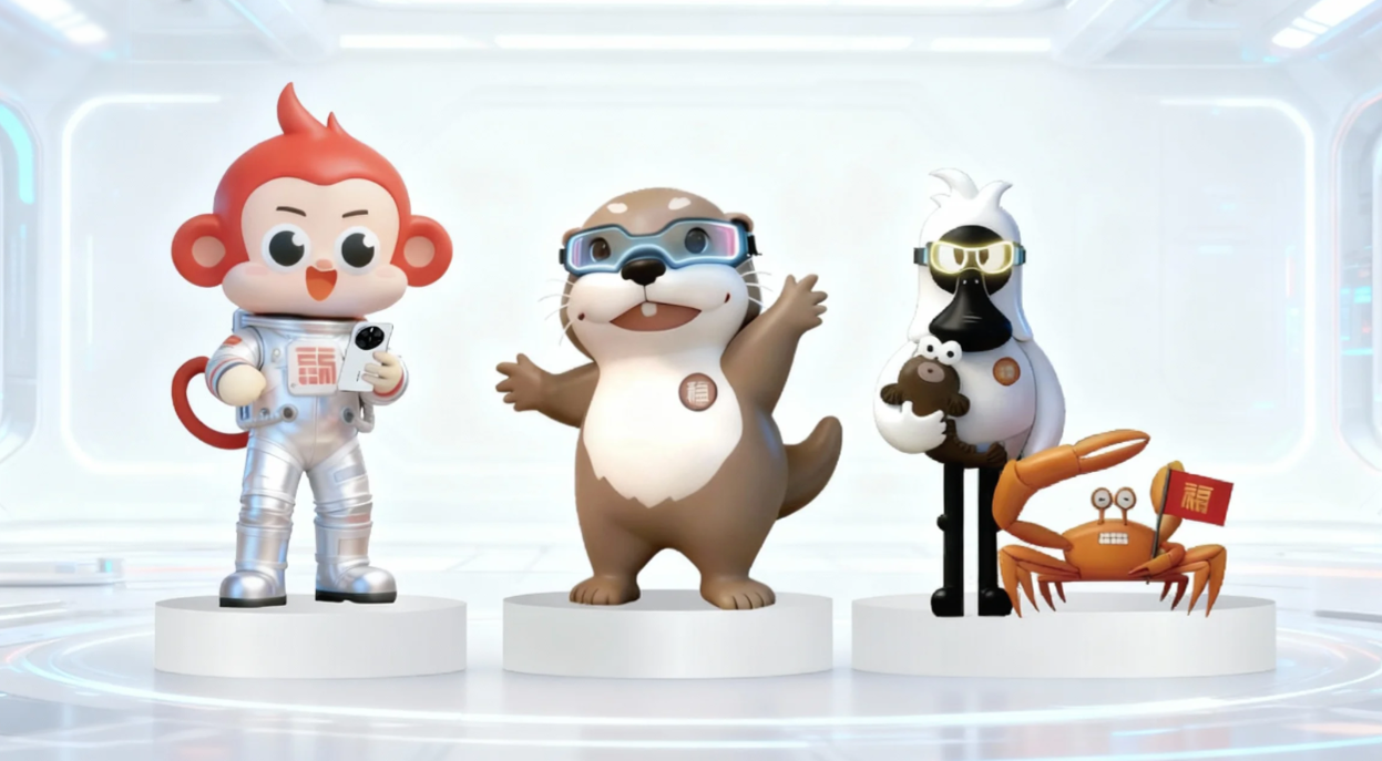在福田,硬核科技流淌着人文温度。“福气家族”换上科技新装,“福气”手持荣耀最新款AI手机,与领益智造的Aimas机器人并肩迎宾;福獭戴上未来眼镜,带您领略未来世界;福鹭、福鱼与福潮邀您一起打卡。