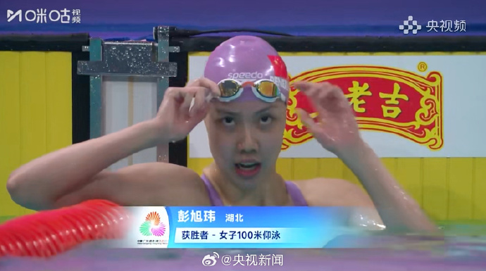 11月12日,第十五届全运会女子100米仰泳决赛,彭旭玮夺得冠军!