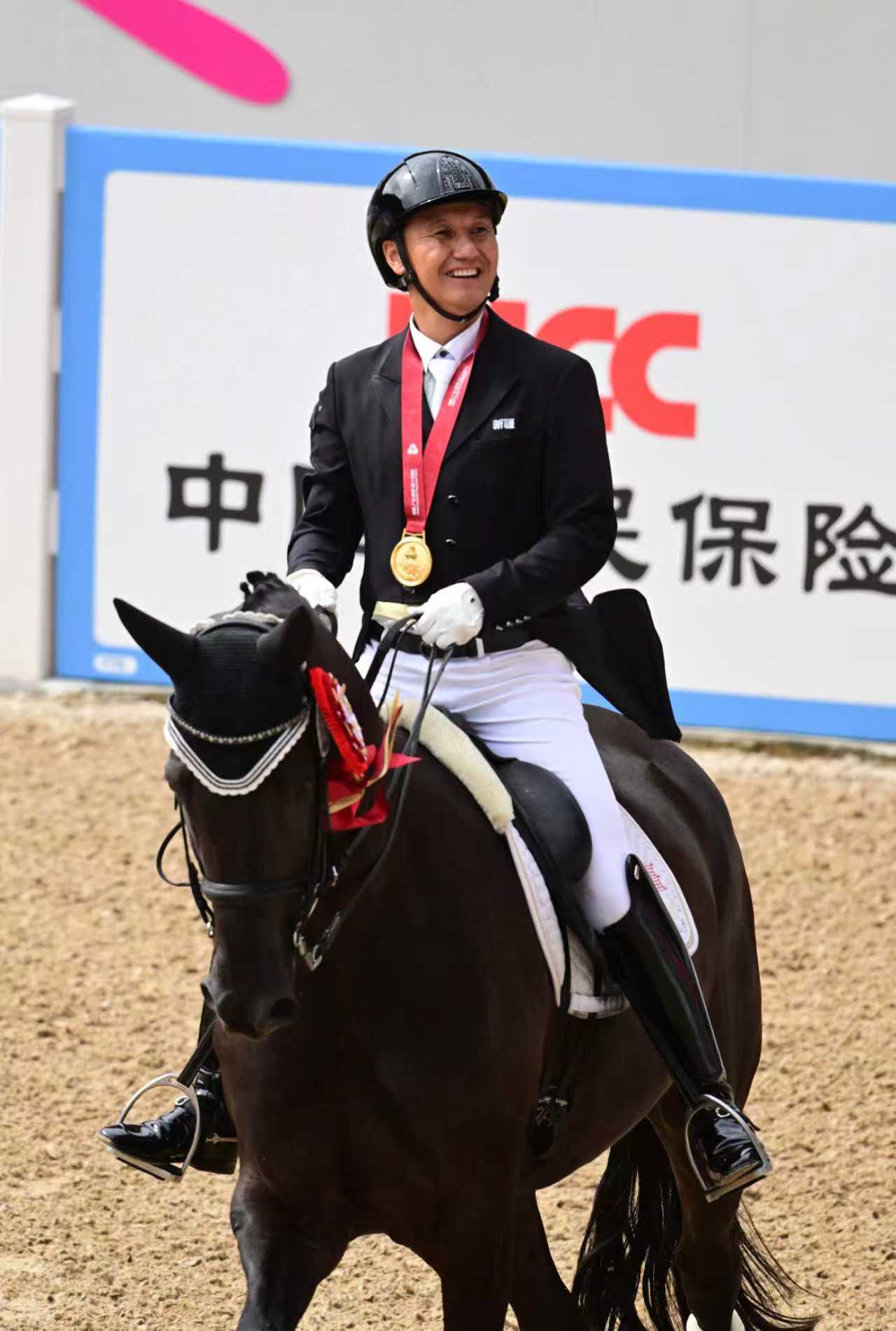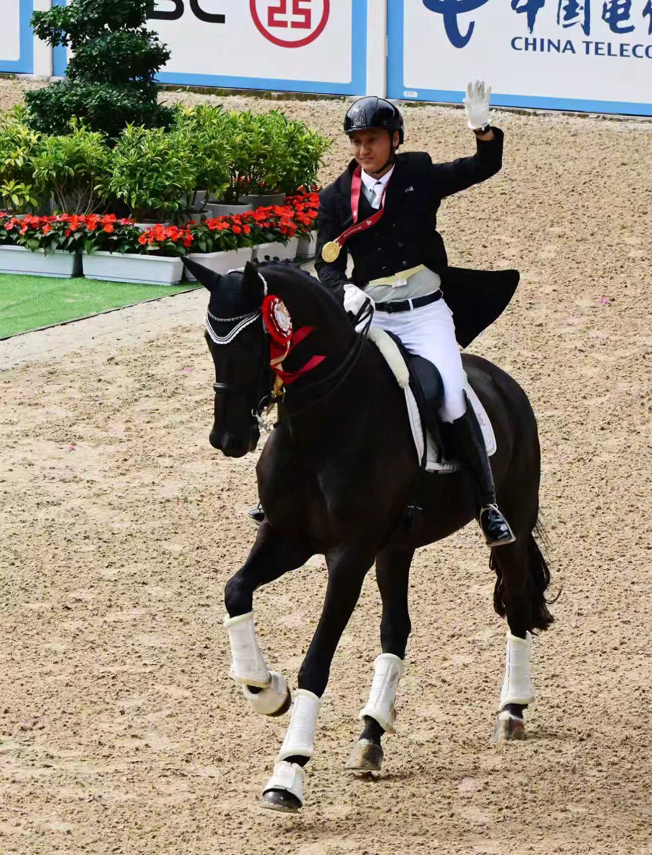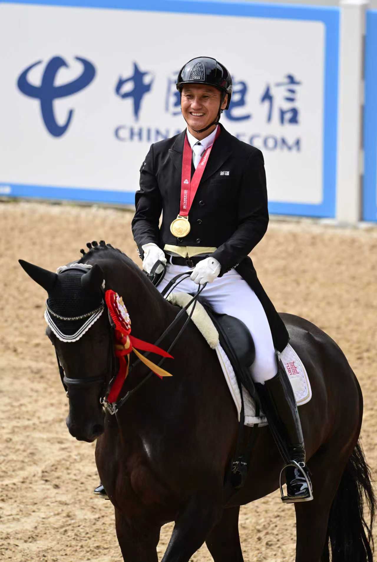 11月12日,第十五届全国运动会马术项目盛装舞步个人赛决赛在广东深圳光明国际马术中心举行,新疆队选手刘涛获得冠军,上海队选手徐墨菲获得亚军,广东队选手顾兵获得季军。