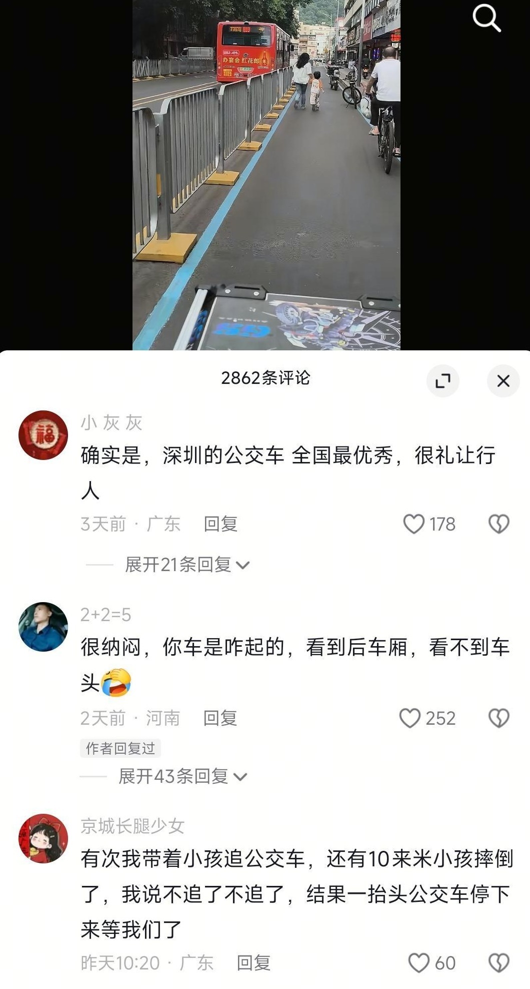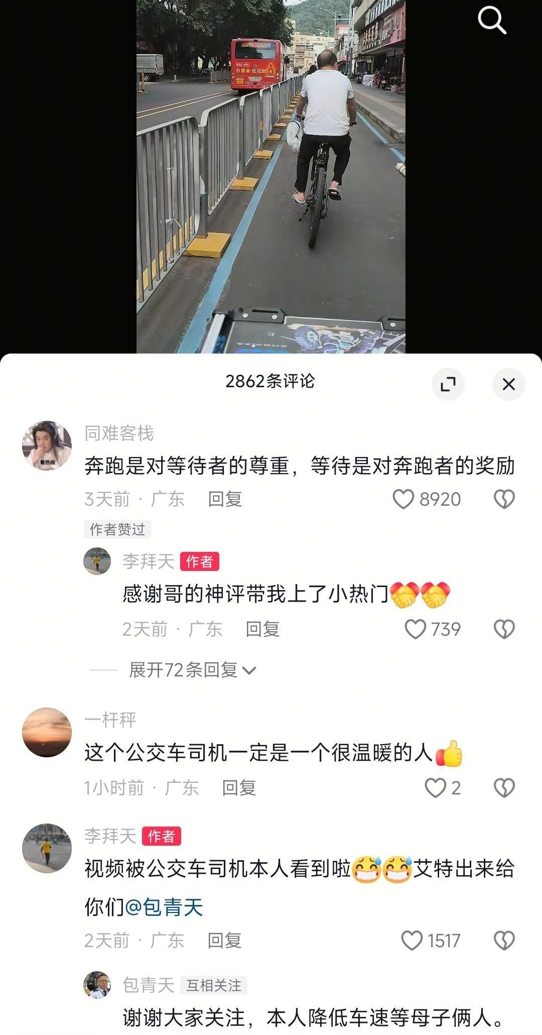 这平凡而温暖的一幕让李先生深受触动,在跟了一段距离后,他默默地将之记录下来并发布到短视频平台。很快,这条蕴含满满“暖能量”的视频吸引大量网友围观,截至发稿时已有高达2.6万次点赞,留言近3000条。公交车所属的深圳市东部公共交通有限公司在评论区向李先生致意:“谢谢您记录下美好瞬间。”网友们也纷纷暖心留言:“奔跑是对等待者的尊重,等待是对奔跑者的奖励。”“这位公交车司机一定是一个很温暖的人。”“我也是公交车司机,遇见这种情况都会放慢速度,到站了人也就差不多追上了。”