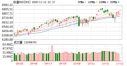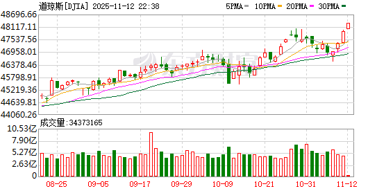 11月12日,美股开盘,三大股指集体高开,道指涨0.28%,纳指涨0.41%,标普500指数涨0.32%。