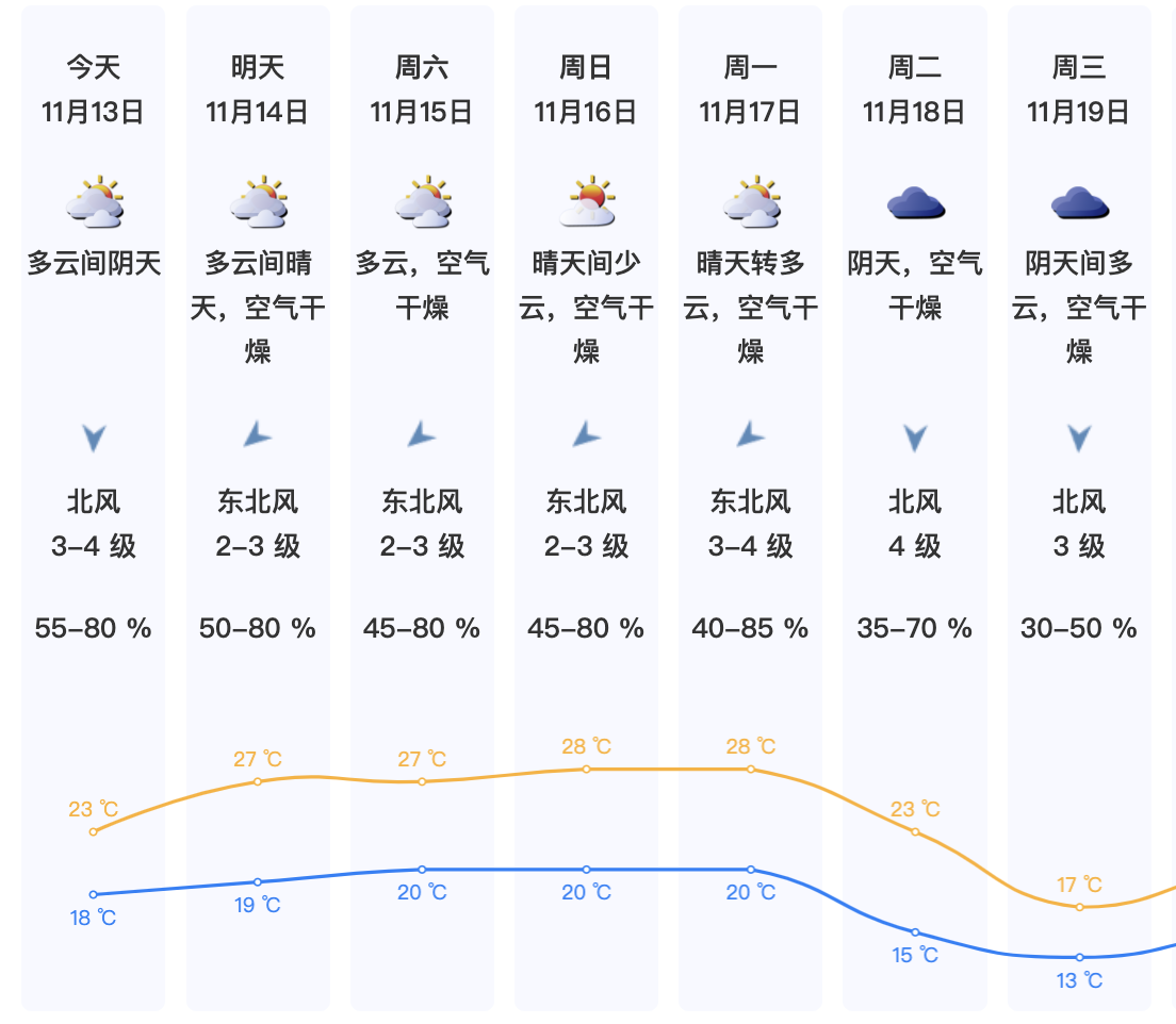 具体趋势:未来五日多云到晴天,空气干燥,气温渐升。