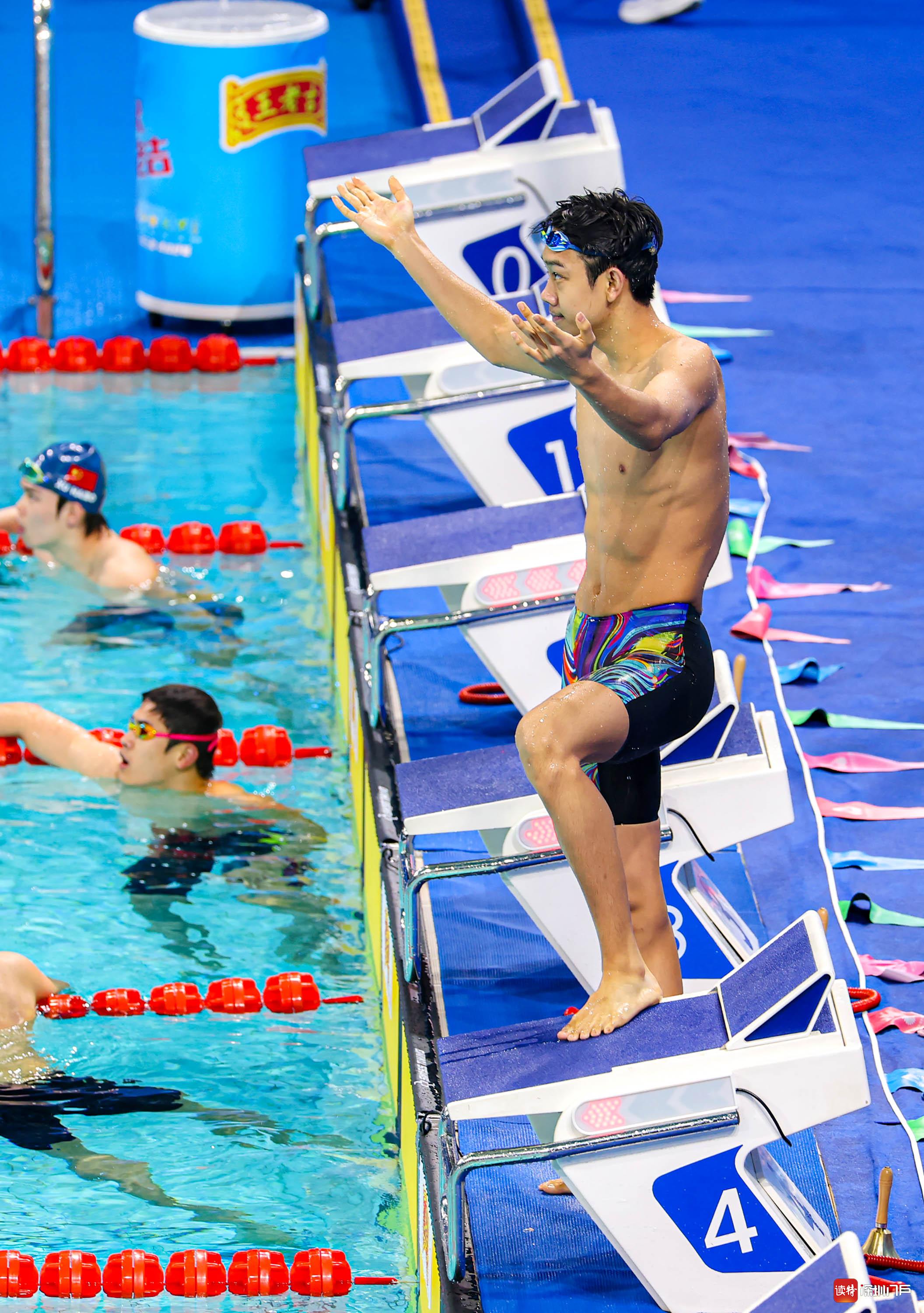 18岁的山东新锐张展硕在男子200米自由泳决赛中强势夺冠,并刷新个人保持的全国青年纪录。张展硕高高站在岸边“新王登基”。