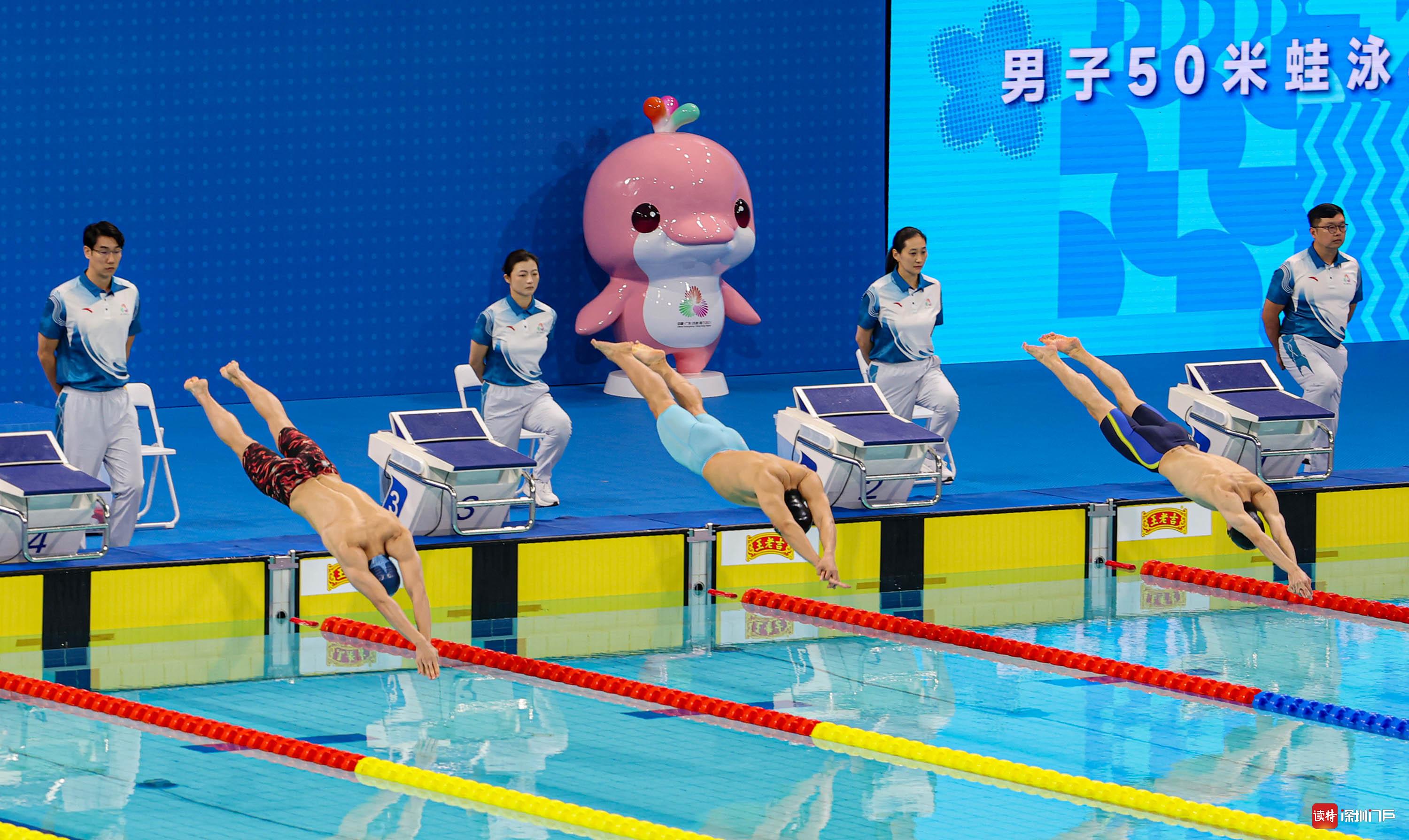 第十五届全国运动会游泳项目第三日赛事展开角逐。