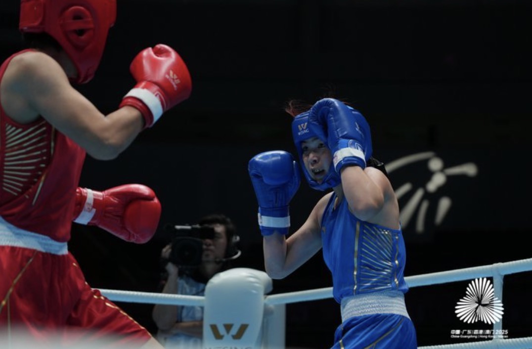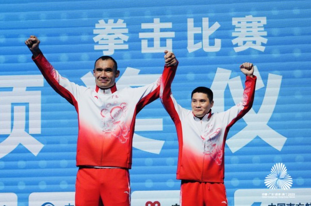 11月12日,第十五屆全運會拳擊項目決賽在寶安體育中心體育館迎來高潮。全場觀眾齊聲倒數,歡呼聲中,東道主廣東選手巴依克吾孜·達那別克以5:0戰勝中國公安體育協會選手馬金陽,奪得男子+92公斤級冠軍,為廣東代表團再添一金!