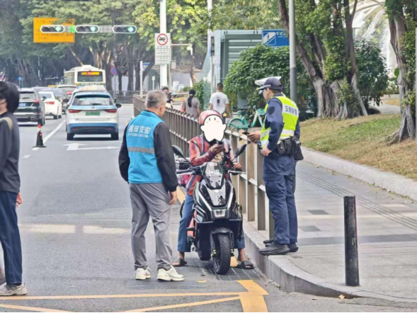 为切实规范电动自行车通行秩序,有效防范化解道路交通安全风险,近日,福田街道交安委办联合福民交管中队、中心区交管中队、上步交管中队,在福民路、彩田路与福华路路口、深南路与福明路路口等重点路口路段开展电动自行车专项整治行动,以“零容忍”态度重拳打击各类交通违法行为,全力守护辖区群众出行安全。