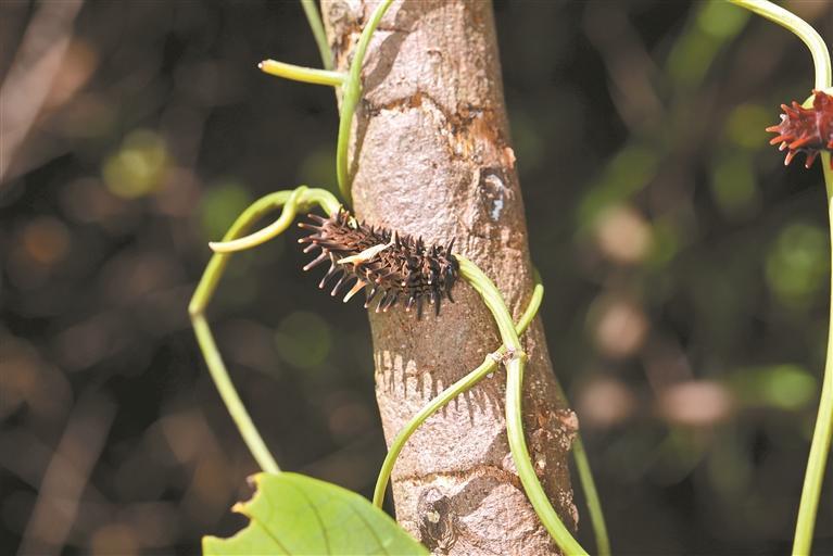 近日,在深圳市生态环境局大鹏管理局和大鹏半岛生态文明建设公益基金的支持下,中国科学院华南植物园研究人员通过在蝶类调查样线周边种植耳叶马兜铃,促进裳凤蝶野外种群繁殖已初见成效。调查发现,裳凤蝶幼虫在耳叶马兜铃上化蛹成蝶,并振翅飞向了大鹏新区广袤的山野。
