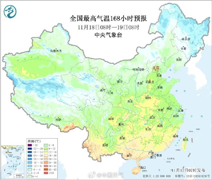 据@中国天气,强冷空气将于15日之前波及西北地区;15-17日中东部大部地区将先后出现大风降温;16-18日,气温自北向南一路下行,气温将现大范围创新低,南方将从下周一开始明显降温。