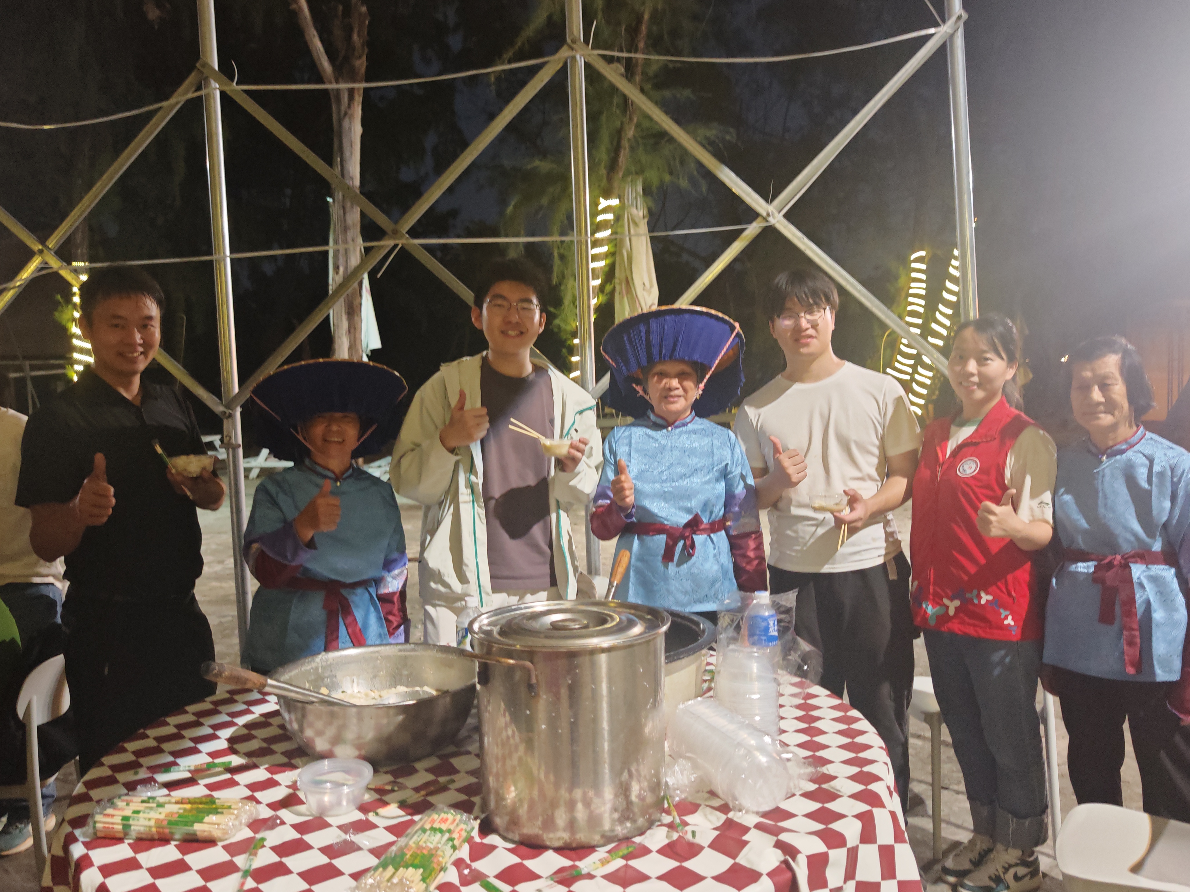 活动尾声,社区特别安排了富有本土特色的人文体验环节,邀请辖区资深阿姨们身着传统服饰,现场展示大鹏特色美食“濑粉仔”的制作技艺。阿姨们一边娴熟地烹饪,一边为北大学子讲述东涌饮食文化与民俗故事,让高校青年在舌尖滋味中读懂东涌的温度与传承。“东涌不仅山美水美,美食更迷人,濑粉仔我一连吃了四碗都不过瘾!”北京大学国际法学院的陈同学意犹未尽地说,“这是一个充满活力与温情的社区,我一定要把这张靓丽的滨海生态名片分享给更多人!”