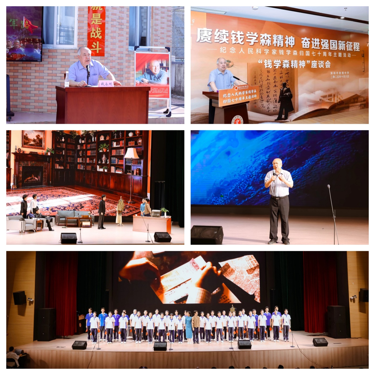 这份沉甸甸的育人成果,为“钱学森校”冠名奠定了坚实基础。此前,该校于10月8日至9日成功承办 “赓续科学家精神,奋进强国征程——纪念人民科学家钱学森归国七十周年系列活动”,将钱学森精神融入育人全过程。在罗湖桥畔的“重走归国路”活动中,77岁的钱永刚教授深情回望父辈报国历程,“科学没有国界,但科学家有祖国”的感言引发全场共鸣;学生自编自导的话剧《归国赤子心》生动再现钱学森冲破阻挠归国的赤诚,“我的事业在中国,我的成就在中国,我的归宿在中国”的台词赢得经久不息的掌声,钱永刚教授分享的“勤奋、严谨、诚信、创新、担当” 精神维度与“不” 字哲学,让在场师生深受震撼;“两弹一星”历史研究会常务副理事长孔令才将军讲述的老一辈科学家荒漠攻坚故事,让“奉献”二字成为师生心中最深刻的精神印记。为期两天的活动通过主题展演、座谈分享、专题报告等多元形式,吸引全国15个省份120 余名教育同仁参与,获评“最具感染力的钱学森精神传承实践”。