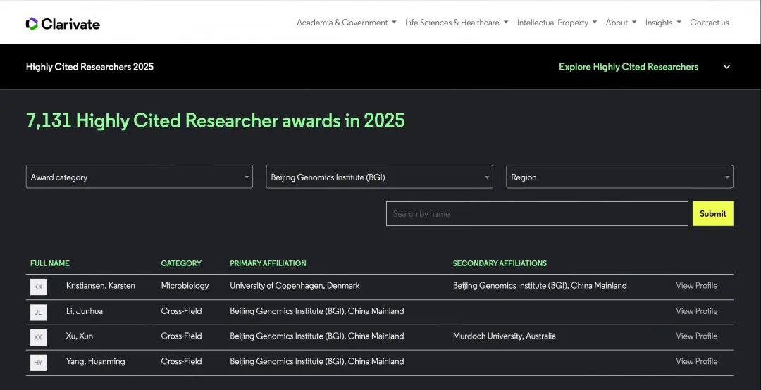 11月12日,科睿唯安(Clarivate Analytics)正式发布2025年度“全球高被引科学家”名单。记者获悉,华大集团联合创始人、理事长杨焕明院士,华大集团首席研究员徐讯,华大生命科学研究院研究员李俊桦以及华大集团专家顾问Karsten Kristiansen 4人入选。