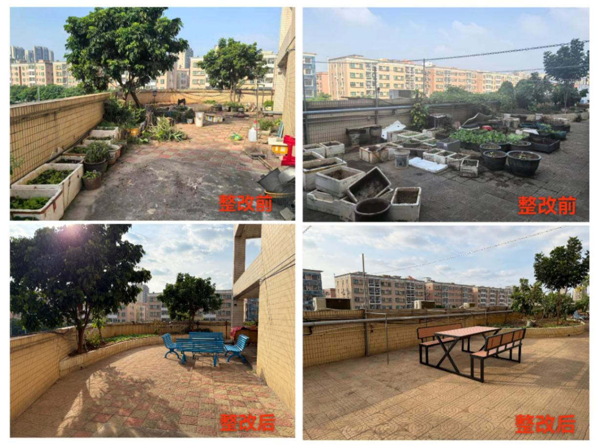 整治后,积极回应居民诉求,增设休闲座椅与晾晒架,恢复并拓展了公共区域的休闲与便民功能。