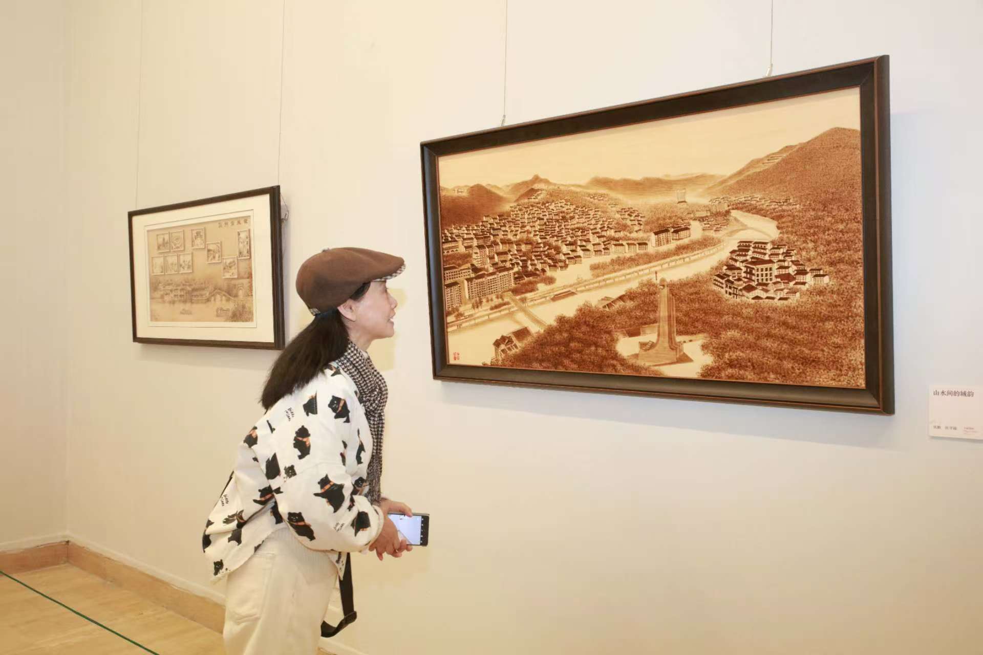 另一幅《山水间的城韵》则描绘出一幅产业兴旺、生态宜居的乡村振兴新图景,展现了新时代中国乡村的宁静与富足。