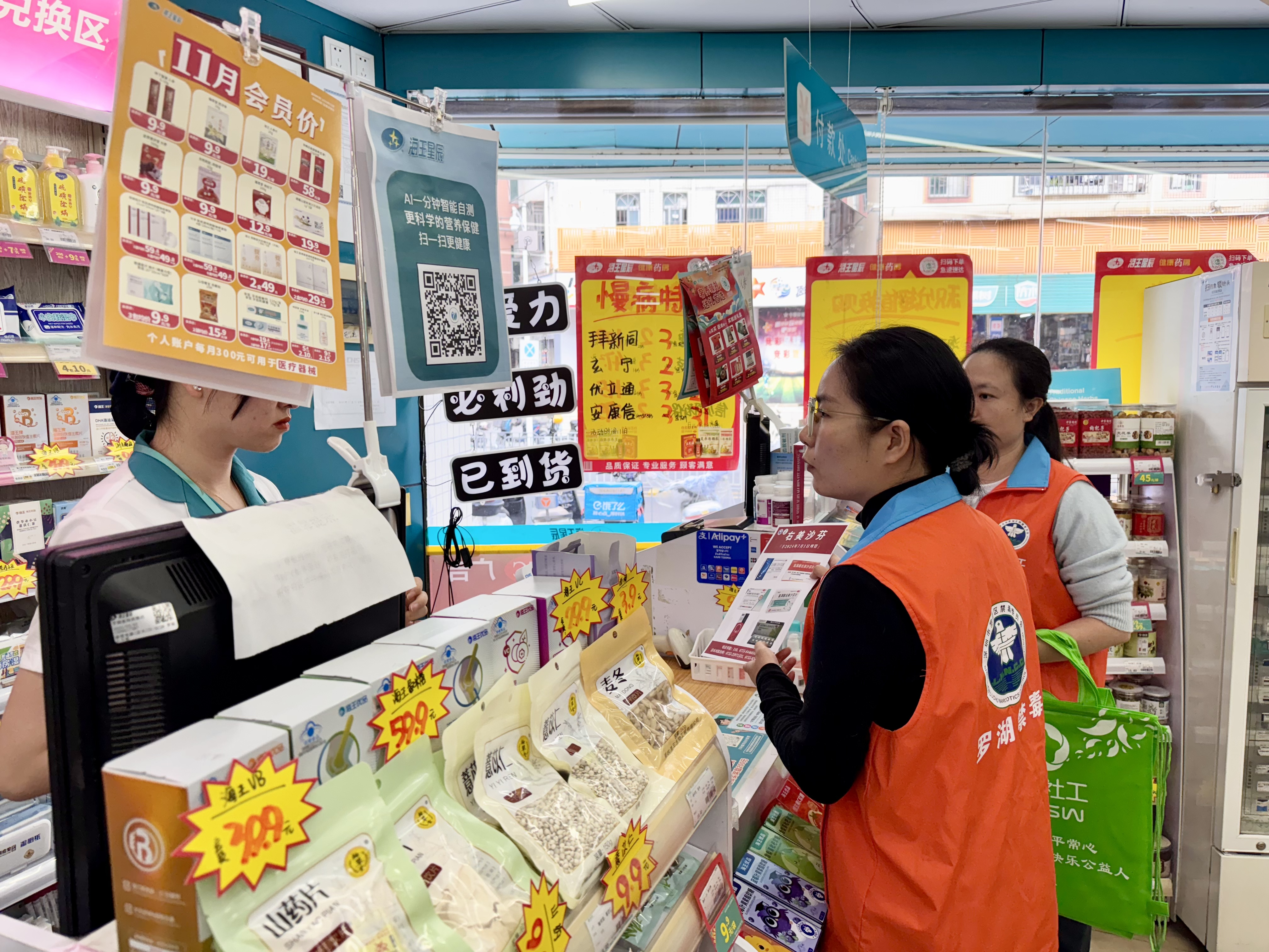 为进一步规范辖区药店对精麻药品及含特殊成分复方制剂的管理,提升医药从业人员的禁毒责任意识和安全意识,从源头上遏制药物滥用和流弊现象,2025年11月12日,深圳市罗湖区清水河街道开展了以“安全用药,远离毒品”为主题的禁毒宣传走访活动。