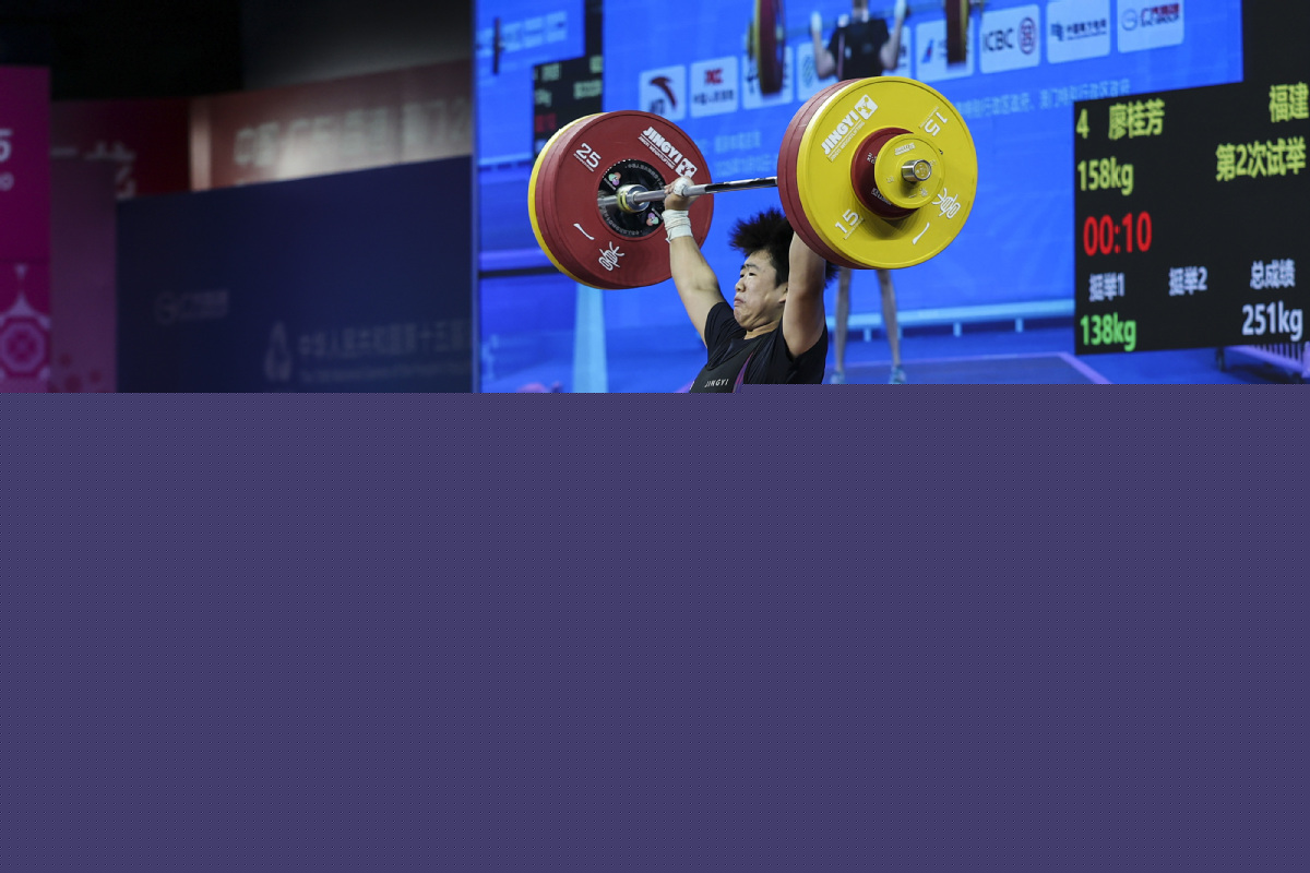 11月13日,第十五届全运会举重比赛进入第四比赛日,女子76公斤级世界纪录保持者廖桂芳碾压式夺冠,打破全国挺举纪录,并且超世界挺举纪录。