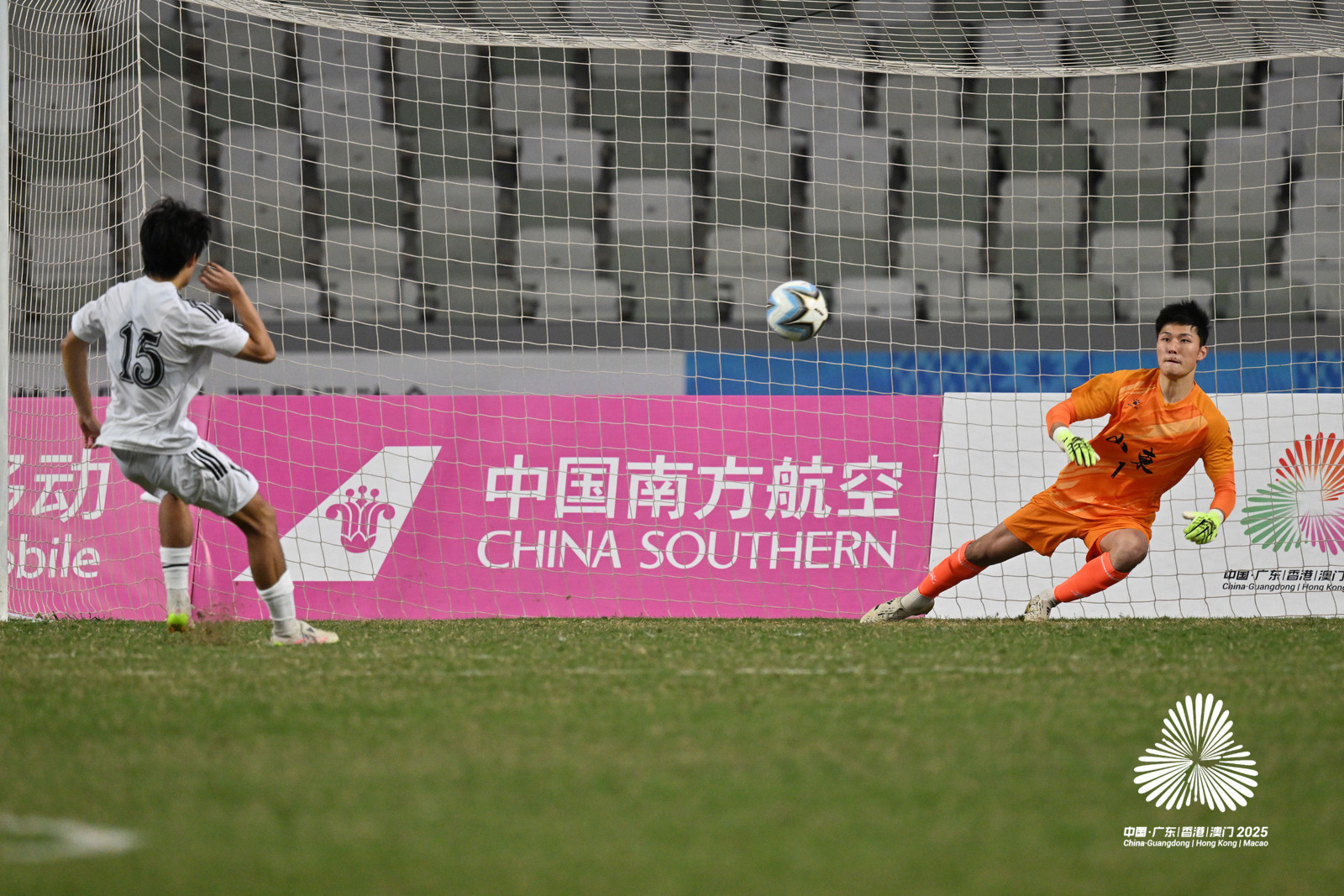 點球決勝中,雙方在前兩輪全部命中。第三輪,廣東隊28號隊員的點球擊中橫樑彈出,湖北隊藉此取得領先,並在後續輪次中穩定發揮。隨着湖北隊21號隊員罰入制勝點球,湖北隊最終鎖定勝局,在全運會歷史上首次奪得U20男子足球項目金牌。