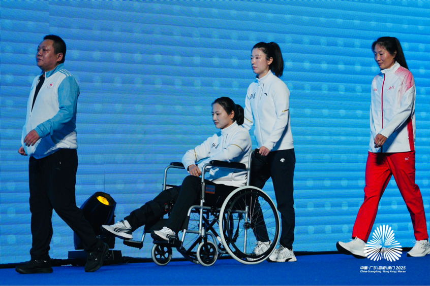 ▲赵春媛乘坐轮椅参加颁奖仪式。