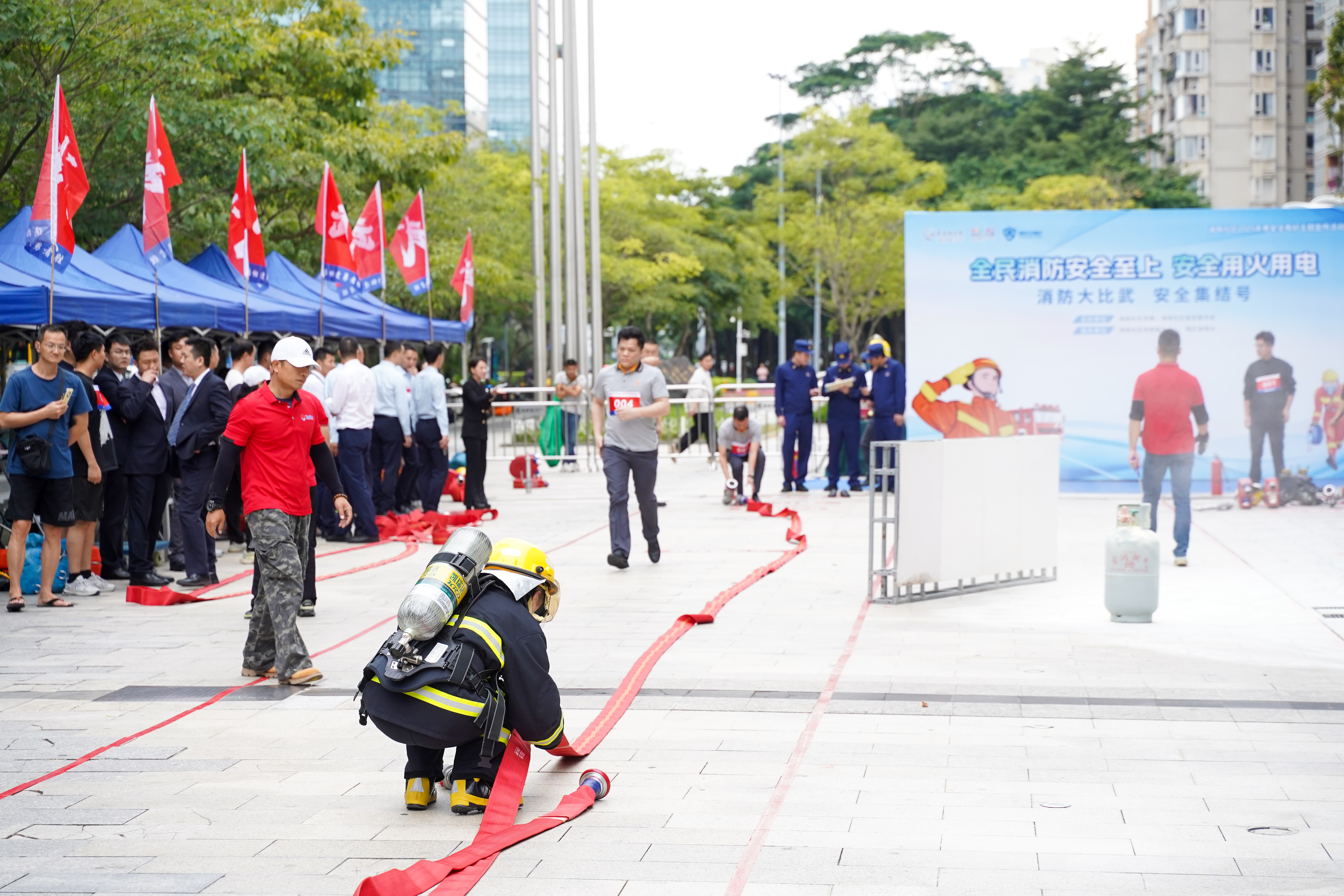 11月9日是第34个全国消防日,为紧扣“预防为主,生命至上”的年度消防宣传主题,全面提升辖区物业单位的消防安全应急处置能力,夯实基层消防安全基础,11月13日下午,一场别开生面的“消防大比武,安全集结号”活动在南山区粤海街道海珠社区上演。此次活动由海珠社区组织,既是对全国消防日的隆重致敬,也是常态化消防安全建设的具体实践,吸引了辖区内11支物业代表队同场竞技,比拼消防技能,共筑安全防线。