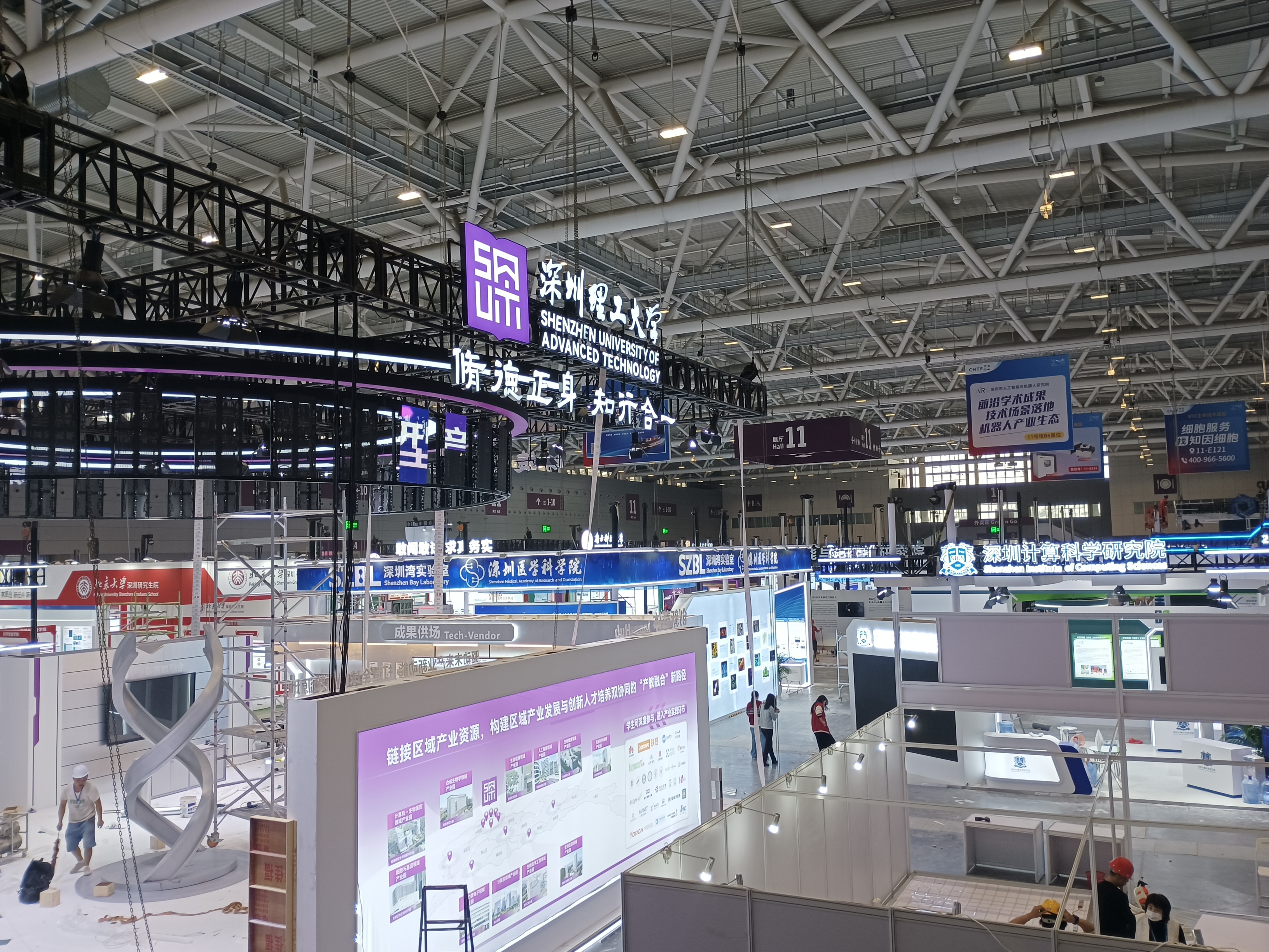 位于11号馆科研院所高校、产教融合、全国重点实验室及生物技术展区主要邀请综合性科研院所、专业性科研机构、高校科研单位、企业研发中心、政府所属科研单位、国际科研组织在华机构、民营科研机构等。清华大学、上海交通大学、中山大学、厦门大学、武汉大学、南开大学、东南大学、南方科技大学、香港中文大学(深圳)等知名高校的集聚,让该展区成为整个高交会“象牙塔”气息最浓郁的所在。