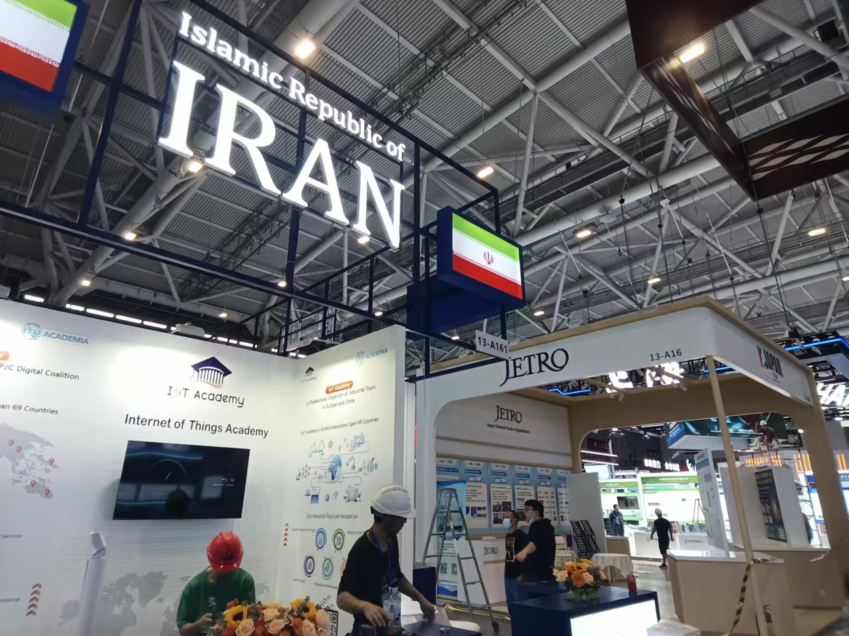 浓郁的国际特色也是13号馆的重要亮点。在国际友好城市科技展区,集中了来自日本、韩国、伊朗、澳大利亚、保加利亚、西班牙、俄罗斯、印度、新加坡、马来西亚、巴西、加拿大魁北克、德国不来梅等国家和地区的数十个国际展团。