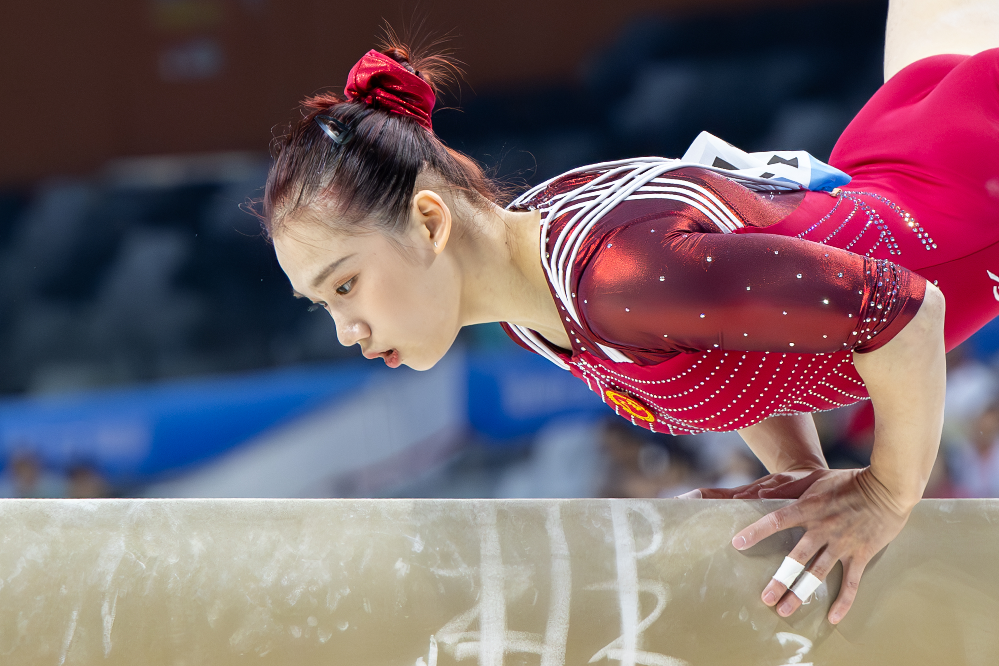 11月13日晚,第十五届全运会体操女子团体决赛在肇庆新区体育中心体育馆举行,浙江队以0.002分的微小优势摘金。