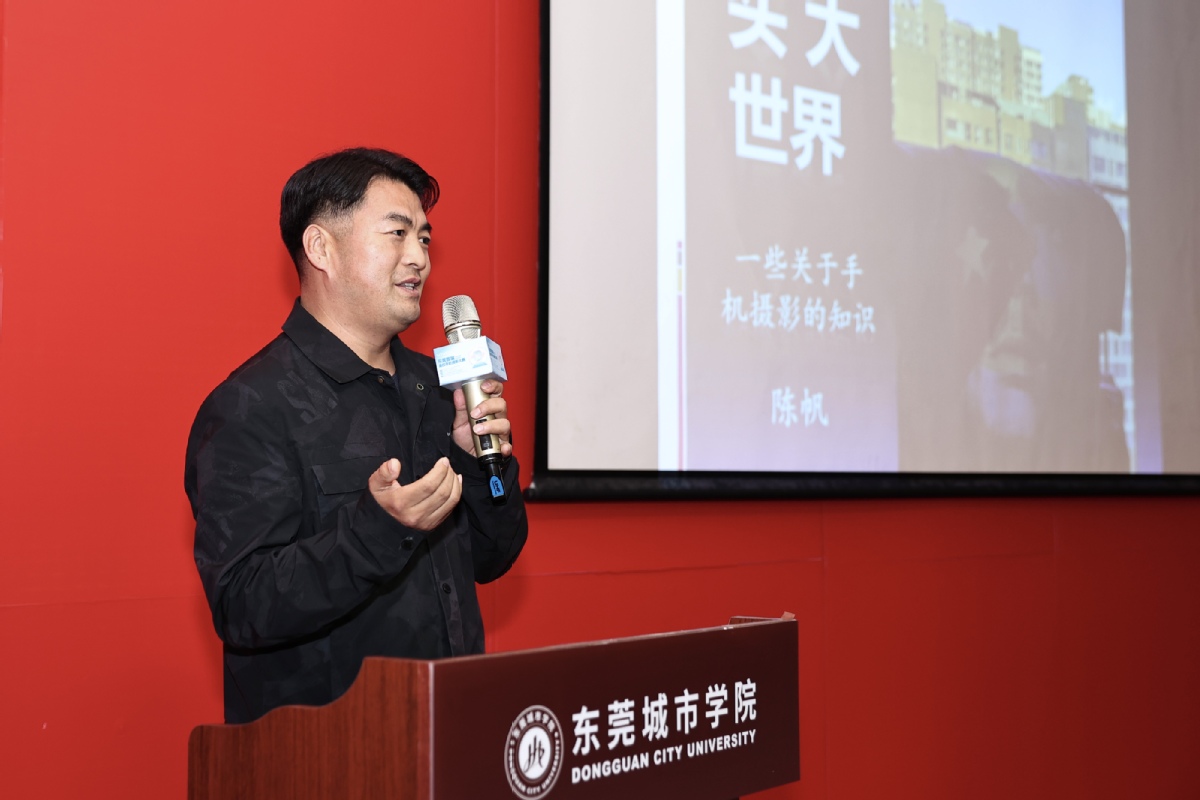 “只要掌握方法,手机完全能拍出兼具质感与故事性的专业作品。”讲座现场,陈帆结合自身深耕新闻纪实与体育摄影多年的实战经验,从设备认知、光影运用、构图技巧到场景实战,为现场师生带来一堂兼具深度与实用性的影像进阶课,助力青年学子利用手机定格精彩画面,解锁创作乐趣。