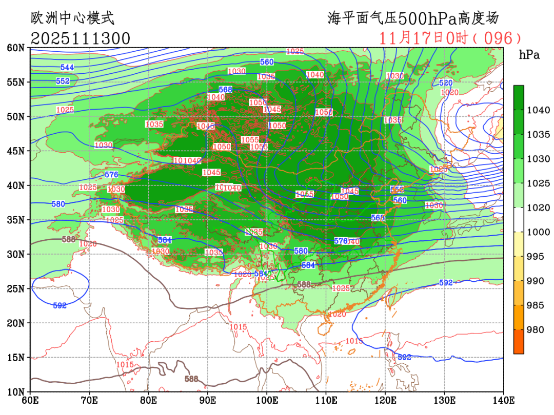 这次寒潮强度强,其冷高压中心可达1055百帕。1055百帕的高压中心会使得空气向四周气压低的地方流动,形成大风。中心气压越高,“推力”就越大,风也就越猛。同时,如此强大的高压,意味着背后有规模巨大的冷空气团,它所到之处,气温便会急剧下降。