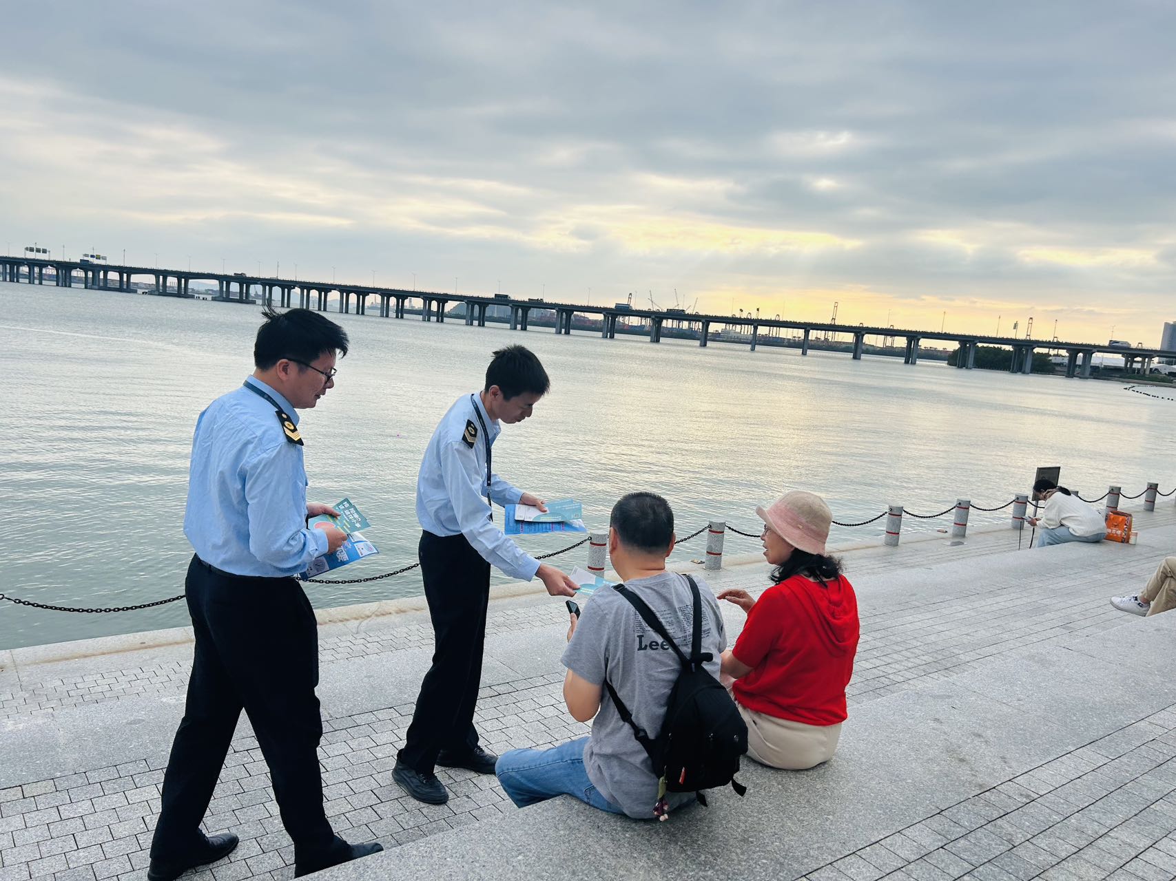 活动现场,参与人员手持醒目标语旗,从游客服务中心有序出发,沿海边步道行进。“无烟全运动起来,清新空气迎面来”的标语随风飘扬,引得过往市民纷纷驻足,不少人轻声念出标语,让控烟氛围愈发浓厚。工作人员沿途向市民派发宣传单页,细致讲解吸烟及二手烟的危害,鼓励大家主动劝阻违规吸烟行为,同时为有戒烟意愿的市民介绍戒烟门诊资源,提供专业帮助。