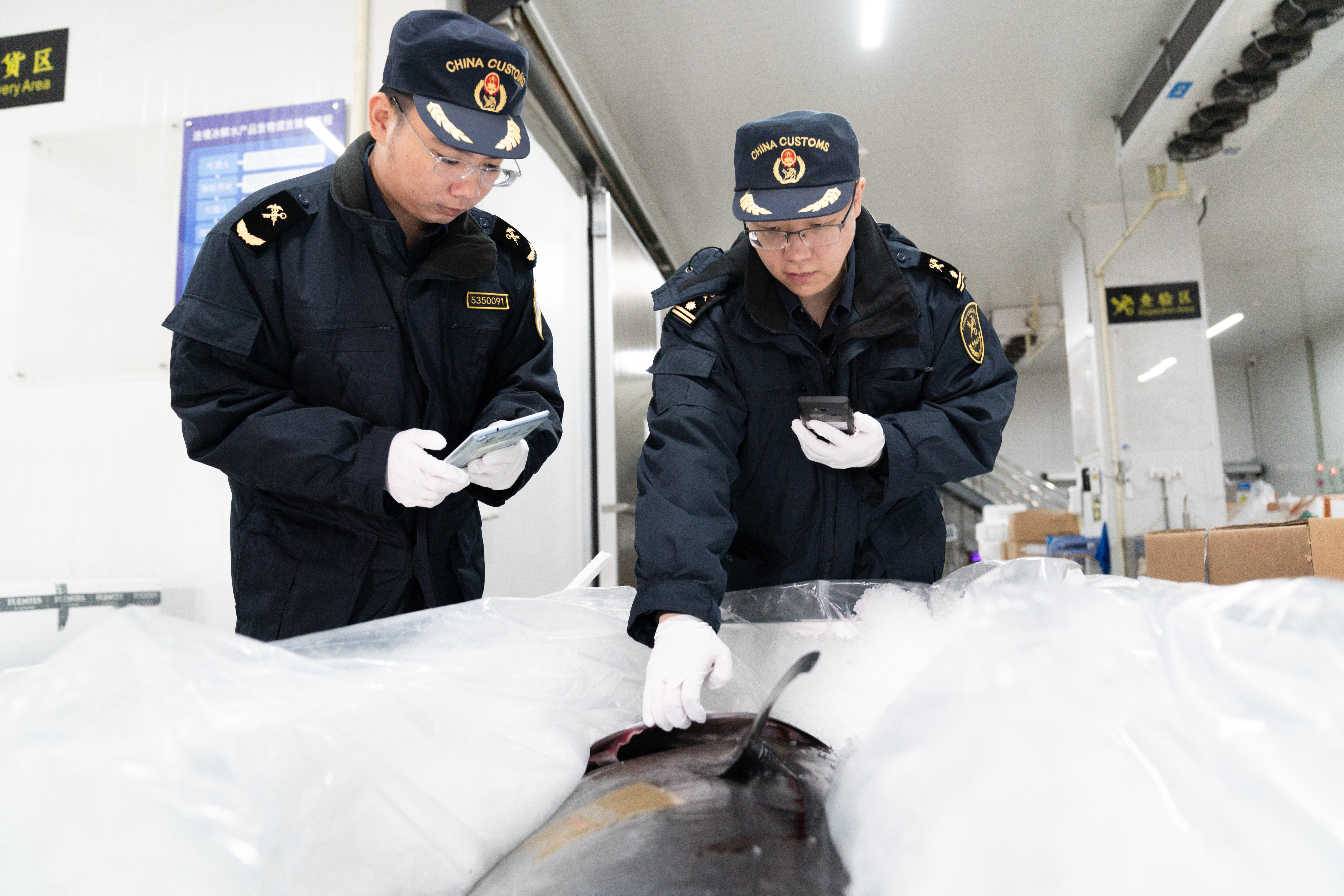 为破解生鲜易腐商品的通关难题,深圳海关量身打造“空中快线”通关模式,通过“提前申报”“随到随查、即查即放”等便利化措施,让货物一落地后即可迅速进入海关监管程序,实现通关“零延时”,最大限度锁住金枪鱼的“鲜活度”。