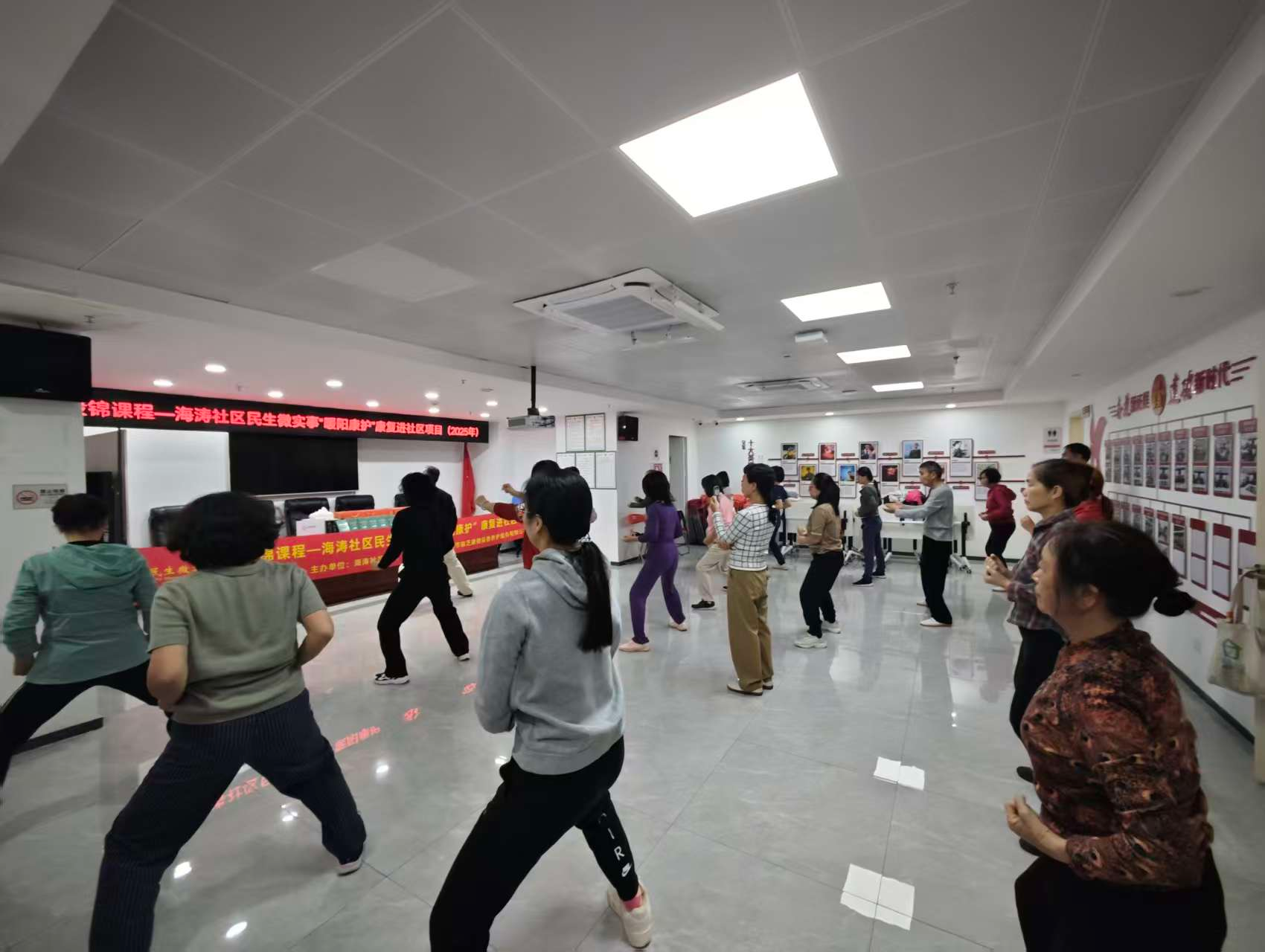 日前,活动在海涛社区党群服务中心一楼圆满结束。本次活动以八段锦教学为核心,吸引辖区内数十名中老年居民及康复需求者积极参与,用舒缓的招式为社区注入健康活力。