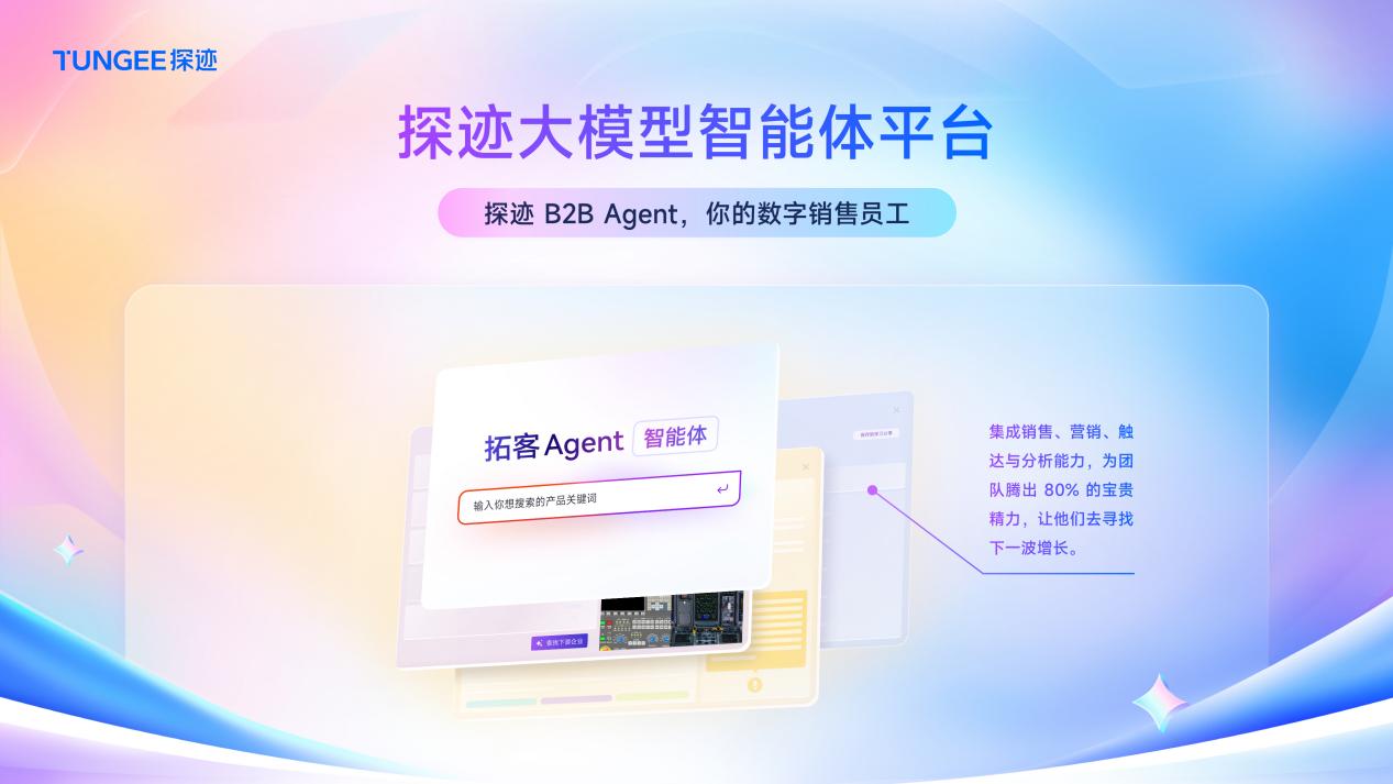 作为专注于数字生产力的大模型智能体平台,探迹科技携B2B Agent、太擎、旷湖数据云等一系列最新技术产品重磅亮相,全方位展示了其针对大模型时代打造的数字员工产品矩阵。