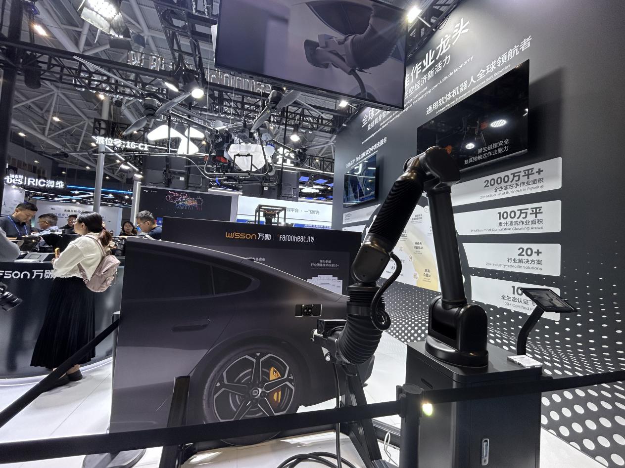 例如,在无人机高空幕墙清洗领域,万勋科技以“行业龙头经典小型无人机+Pliabot®柔韧具身智能机器人+专利动态智控水处理系统”组合,为行业提供独有的无人机空中清洗价值——零距离、抗扰动的更高安全性,无死角、不留痕的更高洁净度。针对长期困扰风电企业的运维难题,万勋科技基于推出的风机运维「洗·测·涂」多合一迅捷作业平台以Pliabot®柔韧技术为底座,通过更换便捷、轻量化的作业模组,即可实现“一机多能”,一台设备就可以完成整机清洗、防雷导通检测、防冰冻涂料喷涂、整机油漆喷涂四大场景作业。