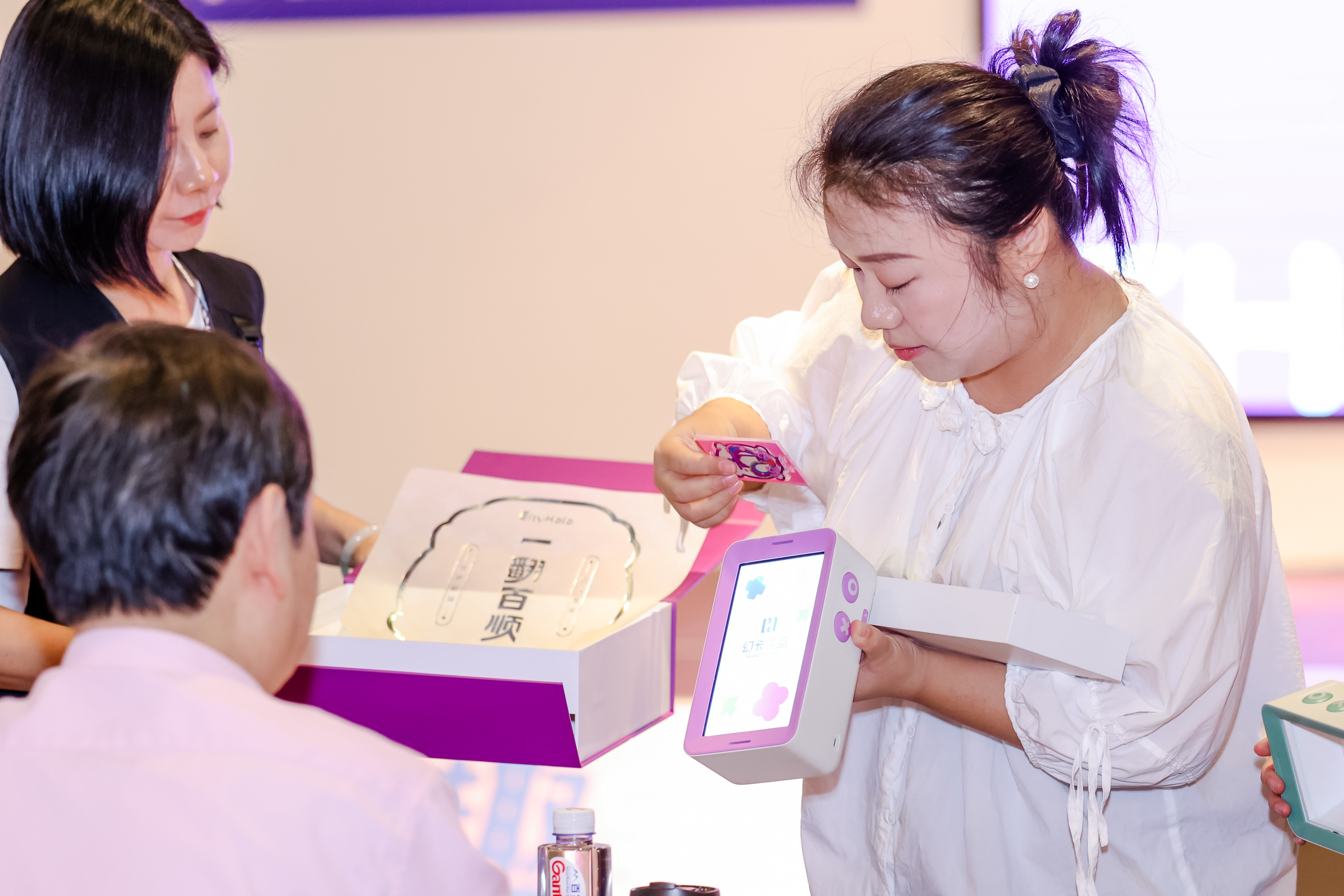 頒獎典禮上,金獎作品《幻卡魔盒・一翻百順幸運簽》的設計師在現場分享了創作心路。該作品通過3D全息投影和NFC互動技術,讓用戶在互動中探索寶安文化,其創意兼具趣味性與科技感。該作品非凡的創意深度、技術高度與文化溫度,成為本屆大賽“文化+科技”融合理念的最佳典範。
