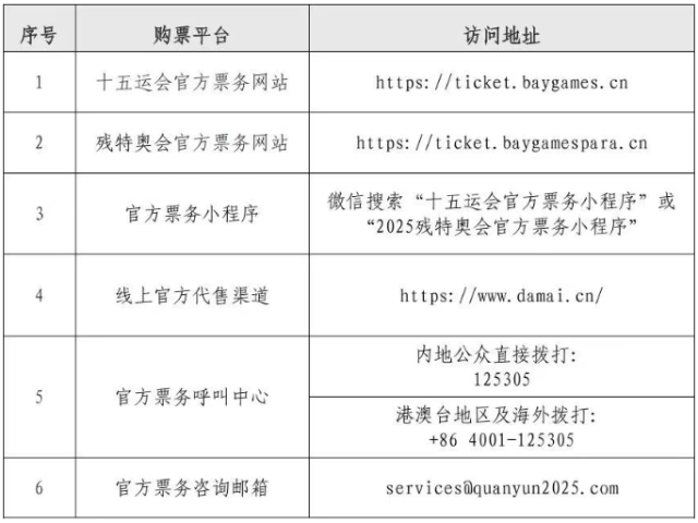 二、为确保您的合法权益,请务必通过十五运会和残特奥会官方渠道购买门票,切勿轻信非官方平台发布的票务信息,避免面临无法入场、财产受损等风险。