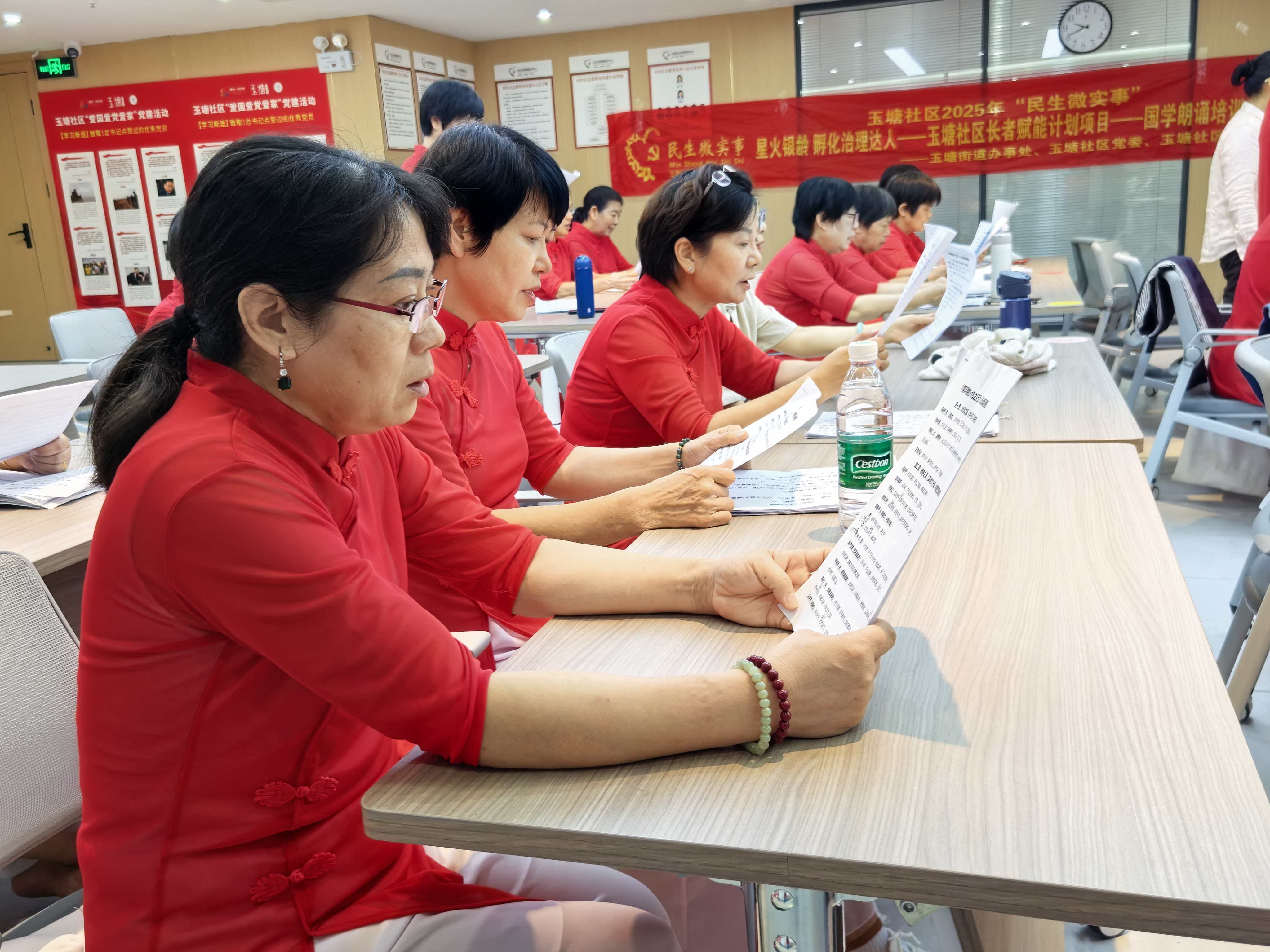 在玉塘社区,“星火银龄·孵化治理达人”项目以系统化课程搭建长者赋能平台。针对老年人对太极、合唱、国学朗诵等活动的学习意愿,社区开展了40场高质量文体培训,帮助他们实现身、心的双重学习与成长。此外,项目还拓展至书法、国画、象棋、园艺等艺术修养与健康关怀领域,并通过专题健康讲座提供科学养生指导。值得一提的是,该项目注重“人才孵化”,挖掘热心长者担任小组召集人、课程助教,初步培育出太极队、书画社等兴趣团体,引导长者从“参与者”向“组织者”转变。截至目前,已累计开展活动50余场,服务1400余人次,成为基层治理与养老融合的创新实践。