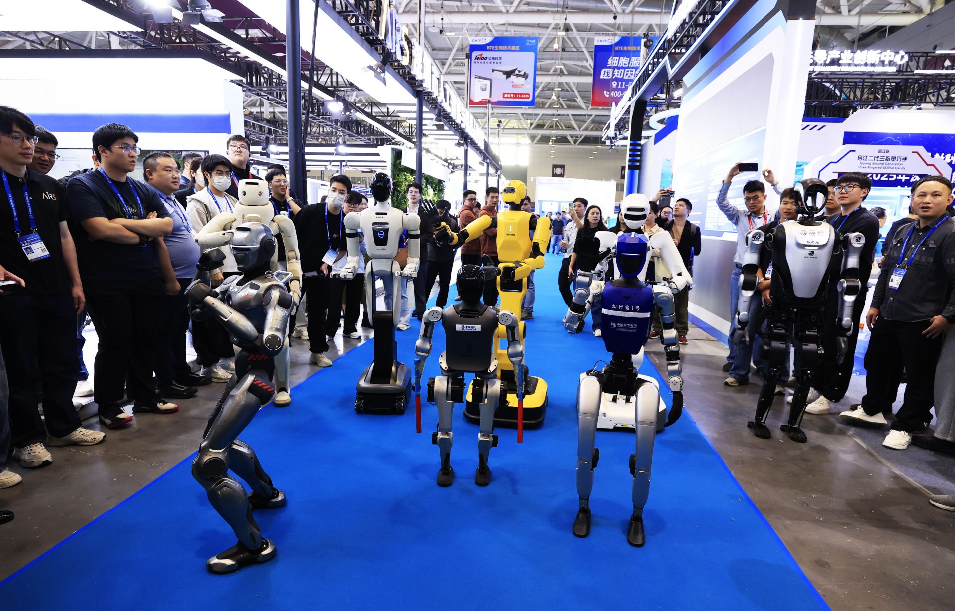 11 月 14 日,第 27 届高交会在深圳国际会展中心正式启幕,40 万平方米的展馆内人流如织,超 500 家企业带来的机器人产业链成果精彩纷呈。只见 11 号馆内,从儿童身高到成人身形的人形机器人按尺寸整齐排开,迈着平稳的步伐缓缓穿行,宛如现实版 “机器人总动员” 上演,每一款都自带 “吸睛属性”。它们的突然 “列队溜达” 瞬间点燃了现场氛围,参展商们纷纷停下洽谈脚步,拿出手机记录这有趣的一幕,市民们更是围得水泄不通,忍不住与机器人挥手互动,惊叹声、快门声此起彼伏,为这场科技盛会增添了几分灵动与趣味,也直观展现了 AI + 机器人带来的人机共生新场景。