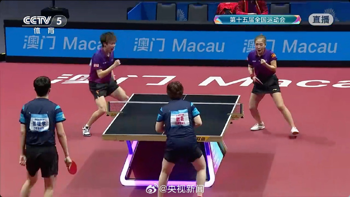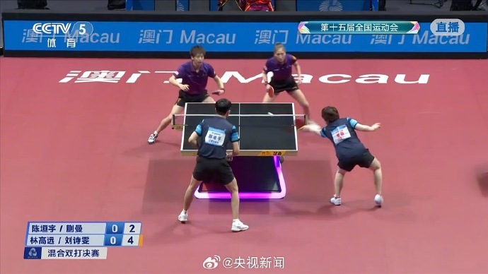 第十五届全运会乒乓球混双决赛,广东队林高远/刘诗雯战胜江苏队陈垣宇/蒯曼,夺得金牌。这也是刘诗雯第六次参加全运会。