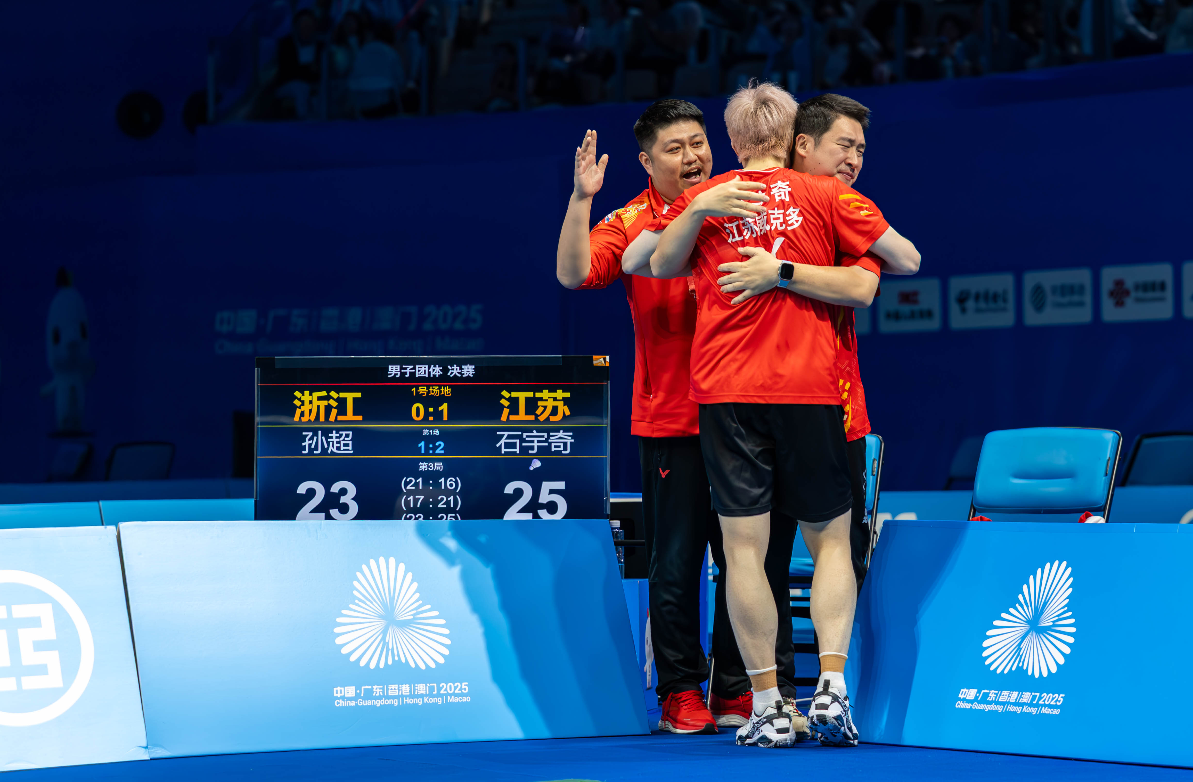 11 月 14 日晚,深圳体育中心体育馆灯火璀璨、人声鼎沸,第十五届全国运动会羽毛球男子团体决赛在此上演巅峰对决 —— 国内羽坛劲旅江苏队与浙江队狭路相逢,吸引了全场观众的屏息瞩目。这场历时近 5 小时的五场鏖战,最终以江苏队 3:2 逆转取胜告终,帮助球队时隔 16 年再度捧起全运会男团冠军奖杯,也为这场跌宕起伏的 “苏浙对决” 画上了圆满句号,赛场之上的每一次扑救、每一记扣杀,都定格成了全运会羽坛的经典瞬间。