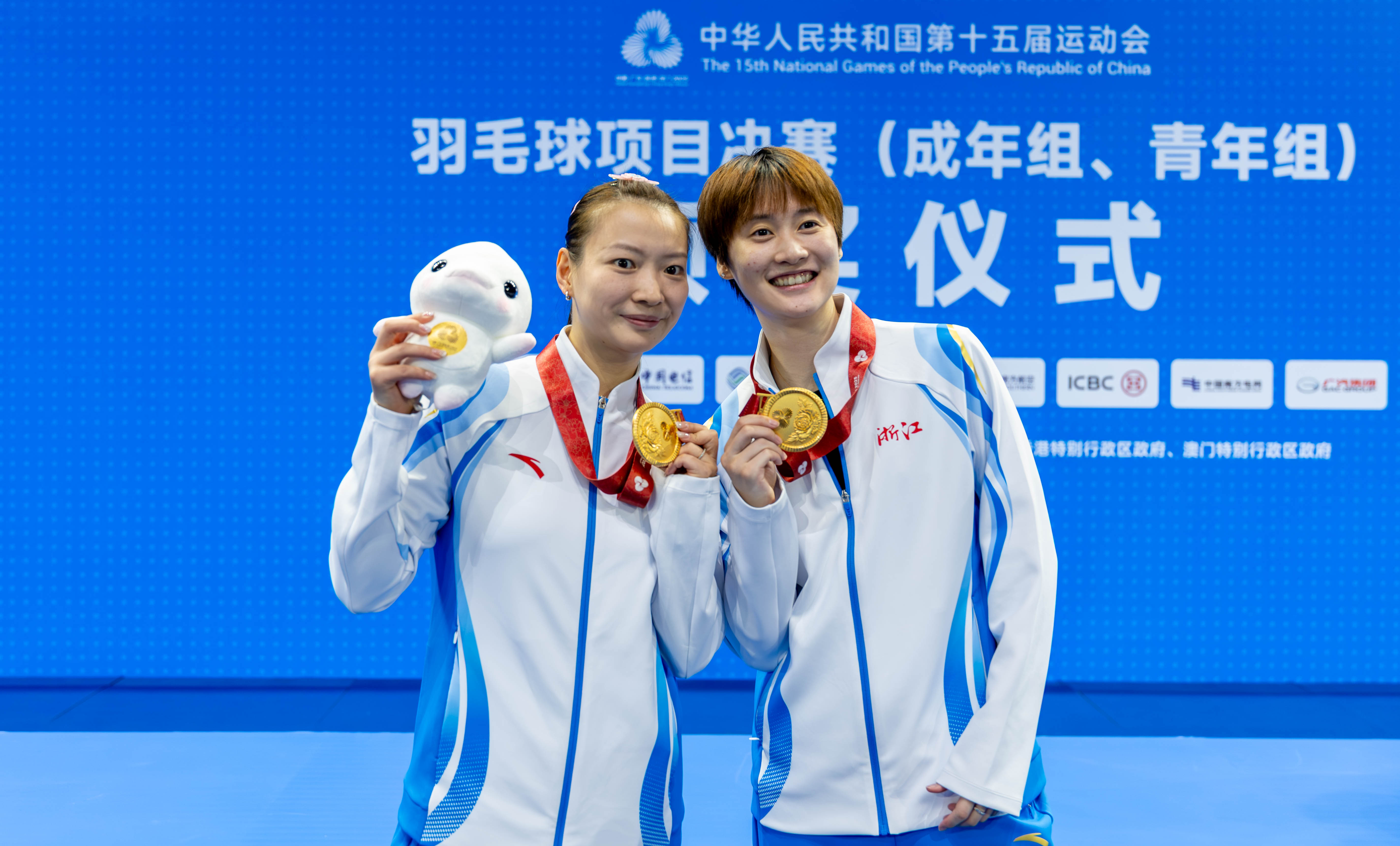 11 月 14 日下午,深圳体育中心体育馆内座无虚席、掌声雷动,第十五届全国运动会羽毛球女子团体决赛在此上演巅峰对决 —— 国内羽坛劲旅浙江队与江苏队再度相逢,最终以浙江队 3 比 0 横扫对手落幕,球队也历史性首夺全运会女团冠军,为浙江羽毛球写下崭新篇章。