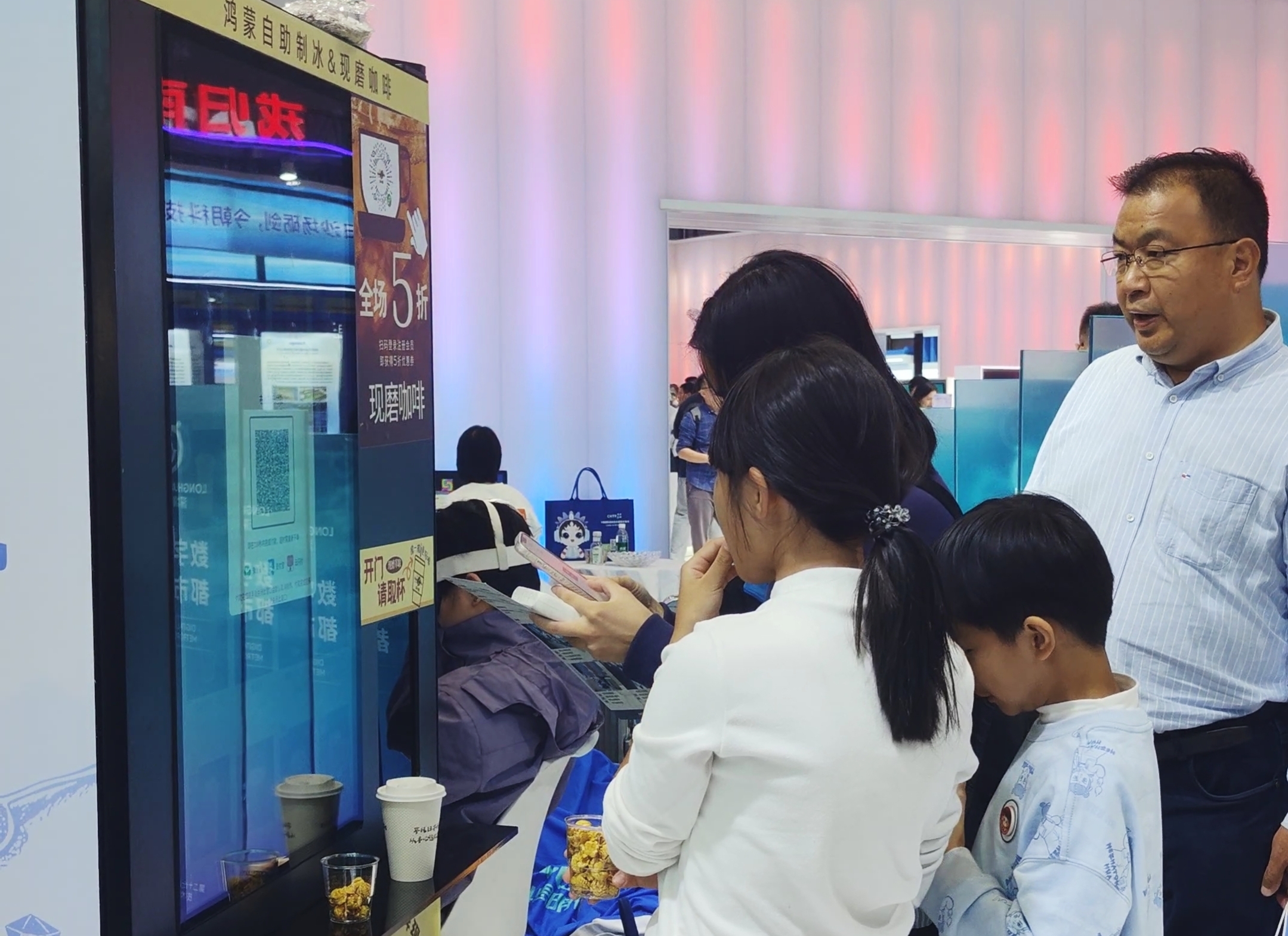 鸿小咖纯血鸿蒙咖啡机前排起长队,一杯香浓咖啡,融合开源鸿蒙的科技基因,一同品尝这杯带有“龙华”温度的秋日咖啡。