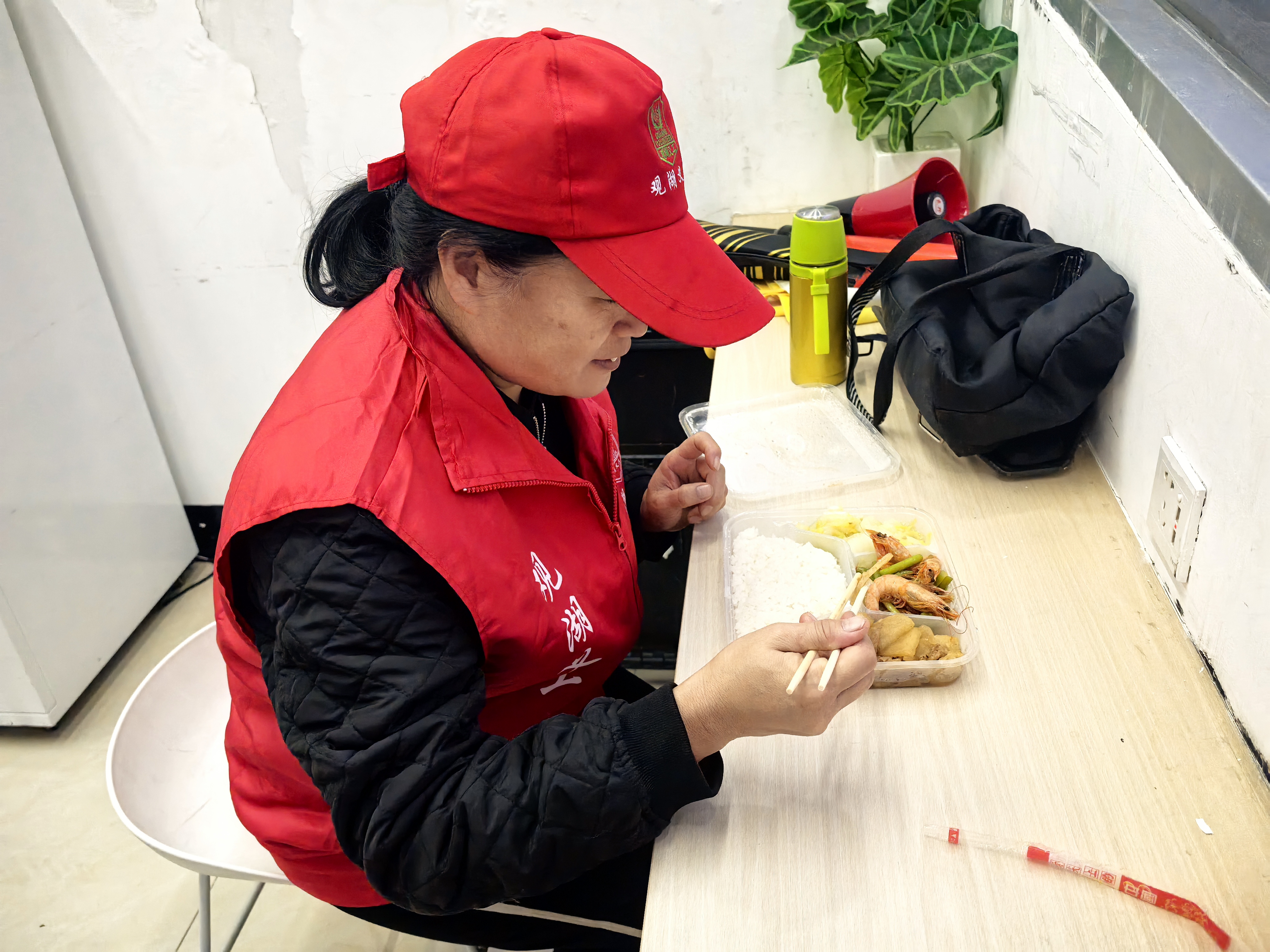 “暖心角”分别设置在街区服务站、交通警亭、爱心商家门店内,面积虽小却“五脏俱全”:饼干、坚果、瓶装水随时补充能量;口罩、创可贴、常用药品应急无忧;保温杯、暖手宝抵御寒风。“以前值守结束只能啃面包,现在能吃上热饭热菜,干起活来更安心!”志愿者王先生感慨道。据悉,观湖街道润城社区目前共有交通安全志愿者100余人,实行排班轮岗,日均服务时长超过100小时。
