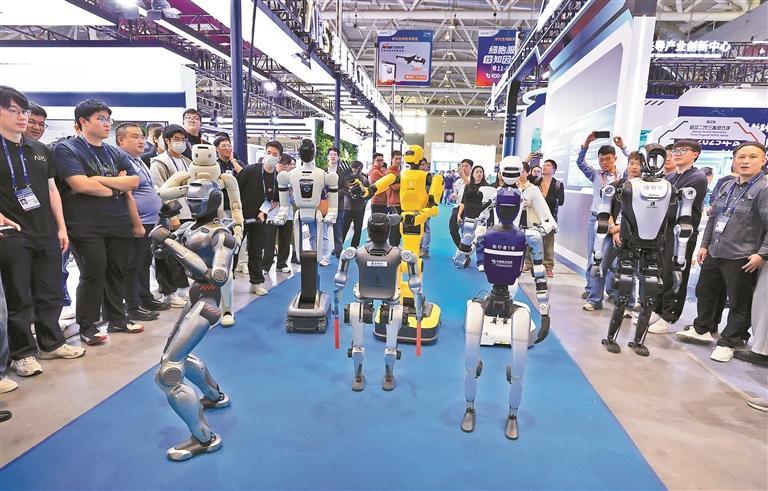记者看到,桥梁检测机器人顺着钢索缓缓向上攀爬,替代人工高空作业;人形机器人化身“电力工程师”,进入变电站、配电站承担高危工作。