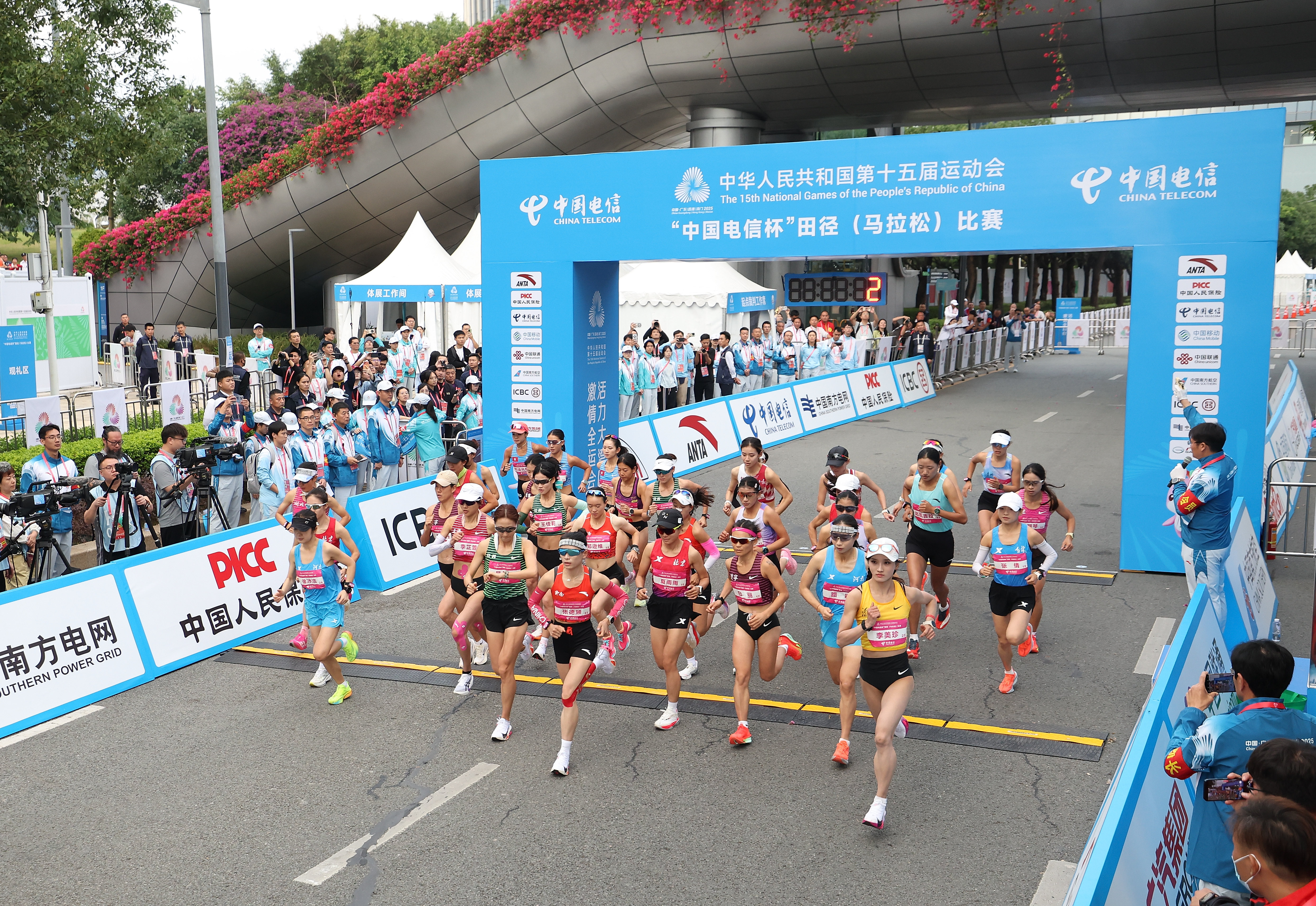 11月15日上午第十五届全运会马拉松项目在深圳湾体育中心鸣枪开跑,比赛线路跨越深港两地,这也是全运会历史上首场跨境马拉松。最终,全国纪录保持着、宁夏队选手何杰以2小时12分07秒的成绩夺得男子马拉松冠军,云南选手张德顺以2小时30分20秒的成绩获得女子马拉松金牌。