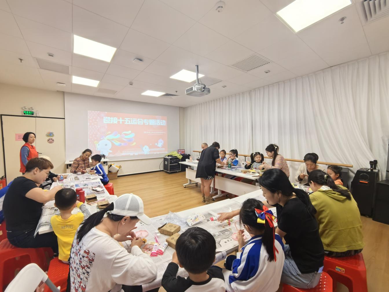 创作过程中,有的家庭从十五运会徽中汲取色彩灵感,有的将奔跑的小人、篮球等运动元素巧妙融入镜框设计。一位家长在合作中感慨:“原来和孩子一起完成一个作品,就像完成一场比赛,需要我们一起朝着同一个目标努力。”欢声笑语中,一面面普通镜子蜕变为独一无二的艺术珍品,它们不仅是家庭温馨记忆的载体,更是社区居民献给十五运的创意温情礼物。