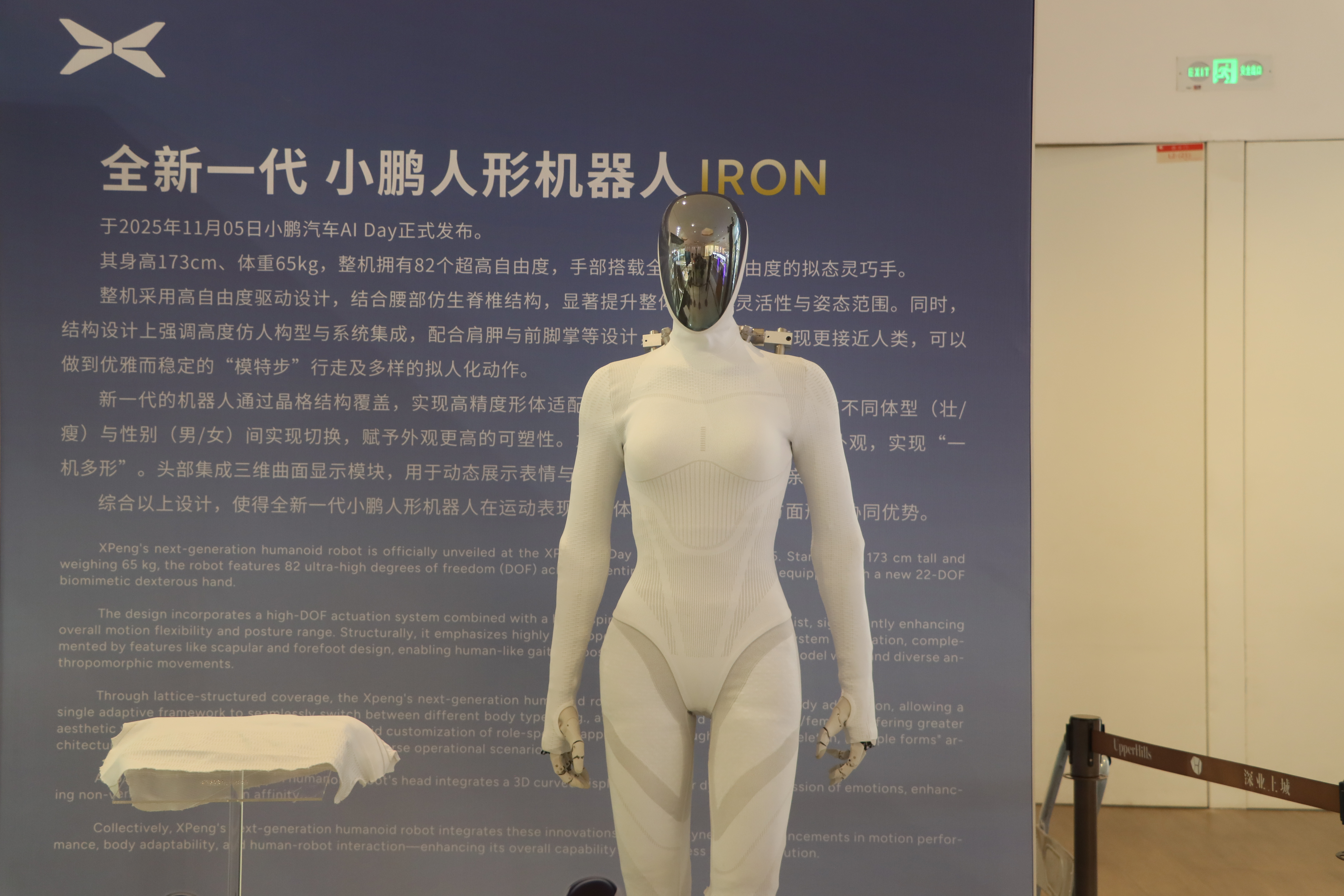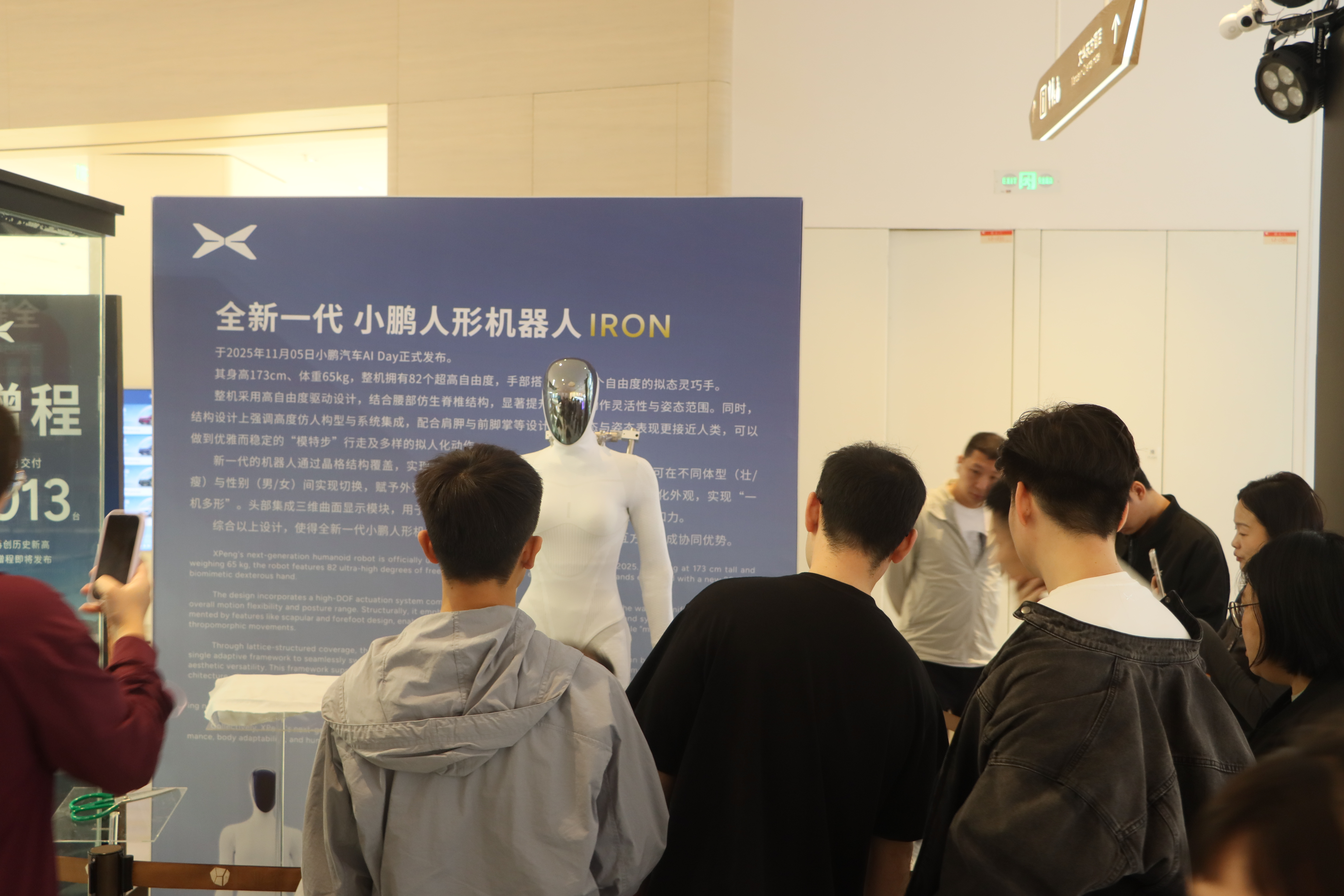 11月15日,小鹏汽车旗下新一代人形机器人“IRON”的全球首次线下公众展览在深圳市福田区华富街道深业上城正式开幕。本次展览为期五天(11月15日至19日),标志着这款集成了多项前沿技术的机器人产品首次与公众进行线下零距离接触。