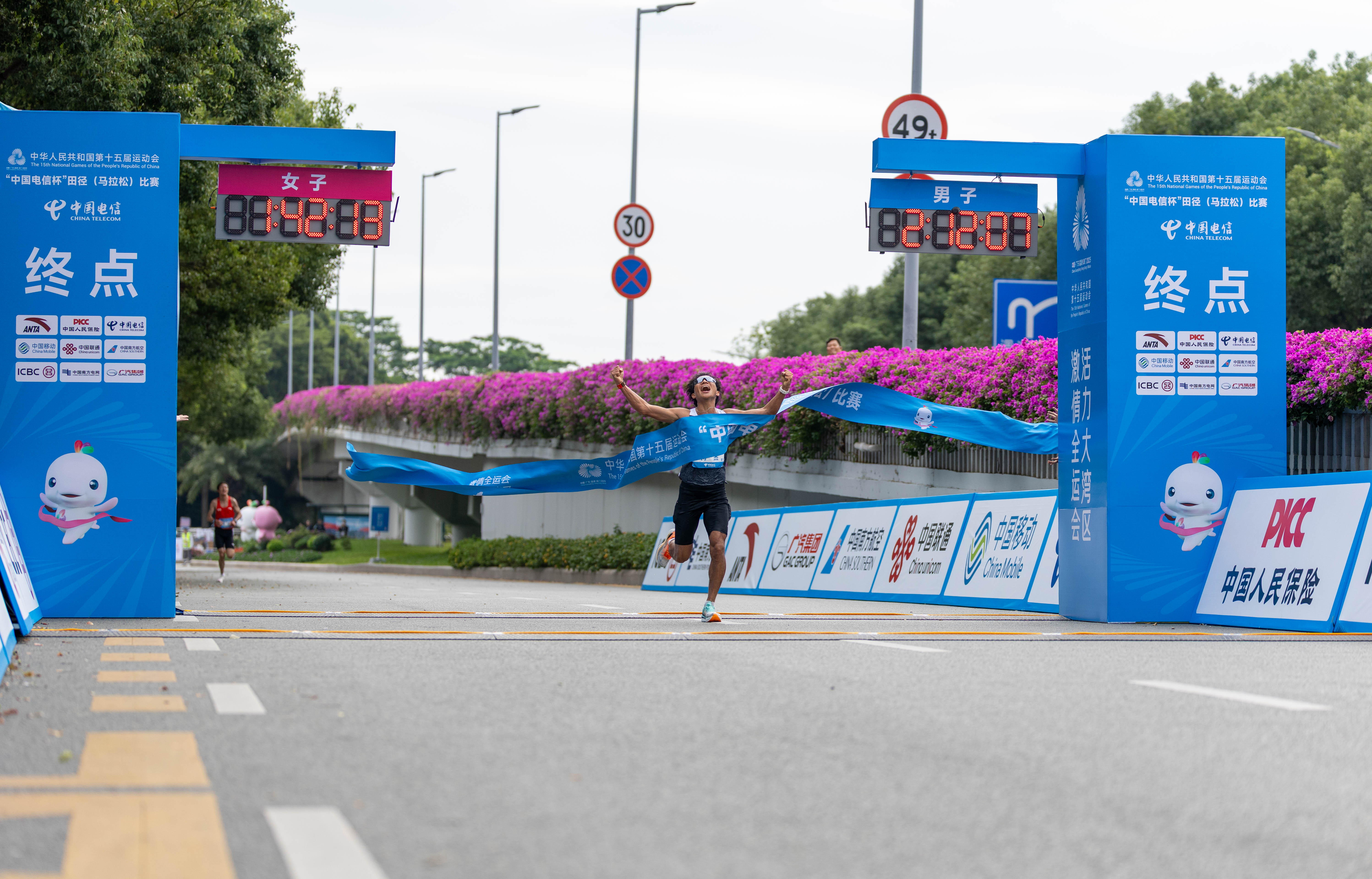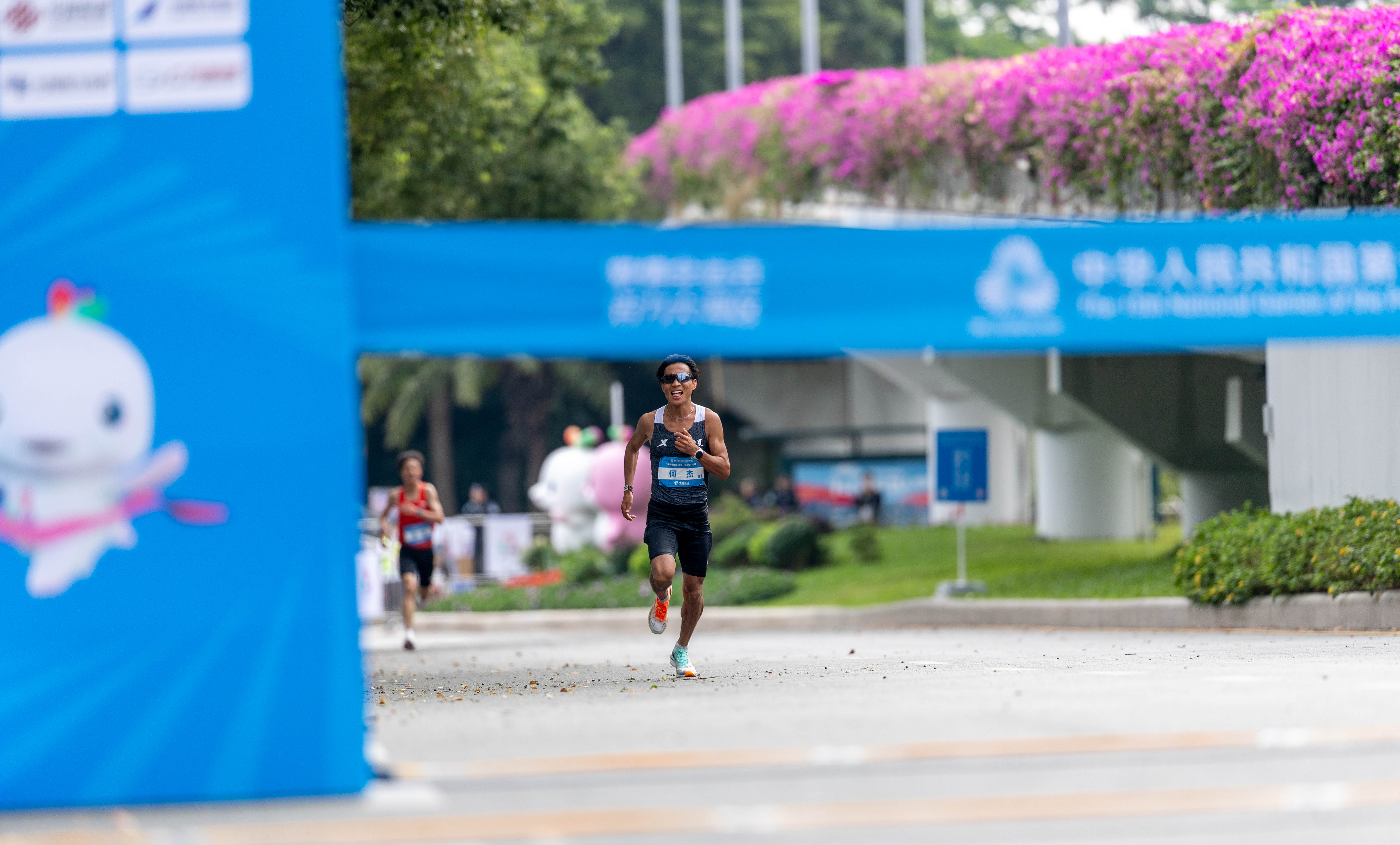 11月15日上午,全运会历史上首个跨境马拉松赛事中,宁夏队选手何杰夺得男子马拉松冠军。